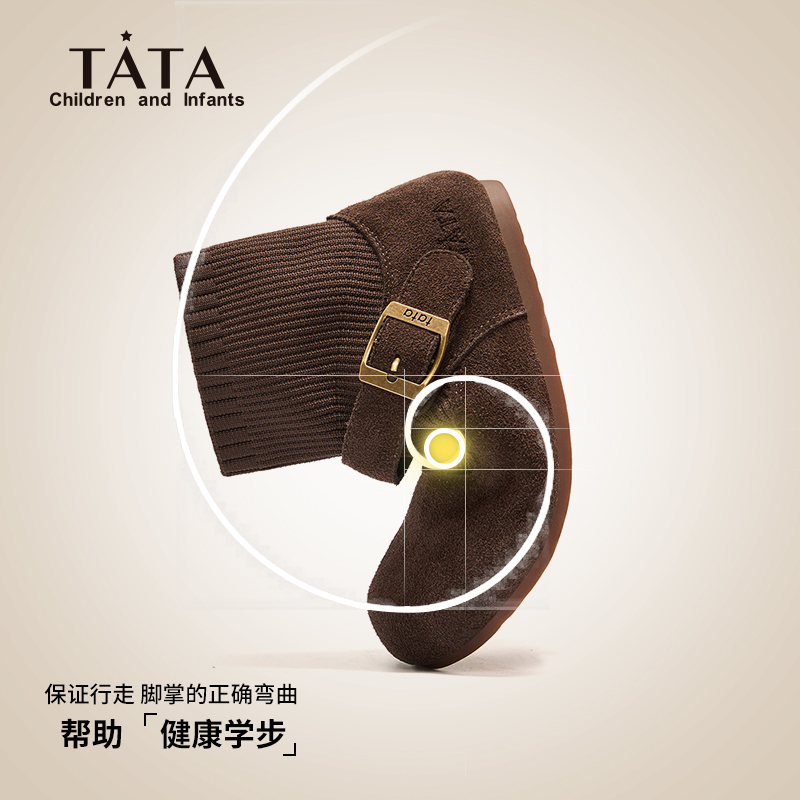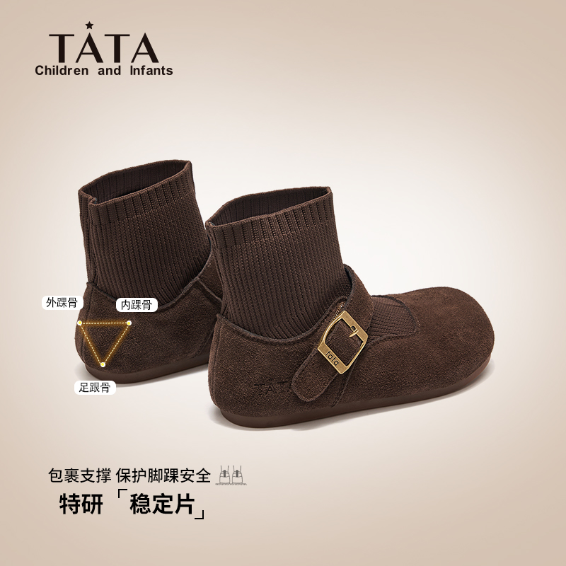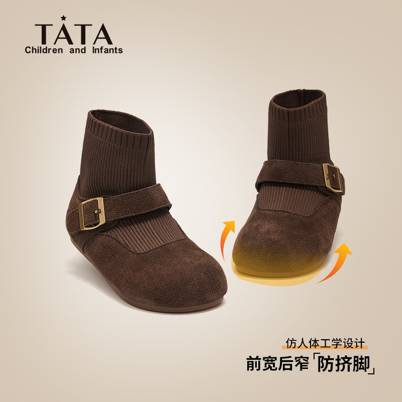 他她童鞋儿童短靴2025秋冬新款女童袜靴防滑软底保暖女孩真皮靴子