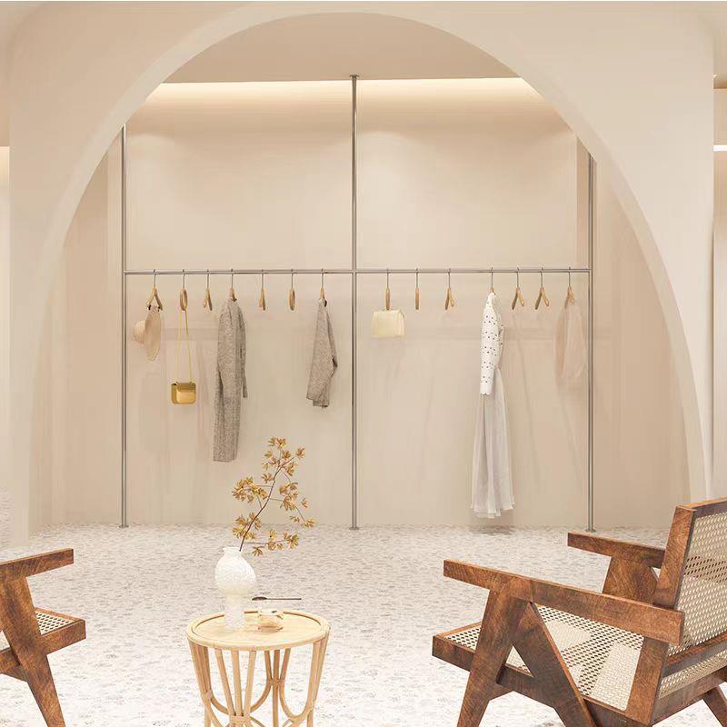 不锈钢服装架女装店壁挂货架上墙正挂展示架服装店衣服陈列挂衣架