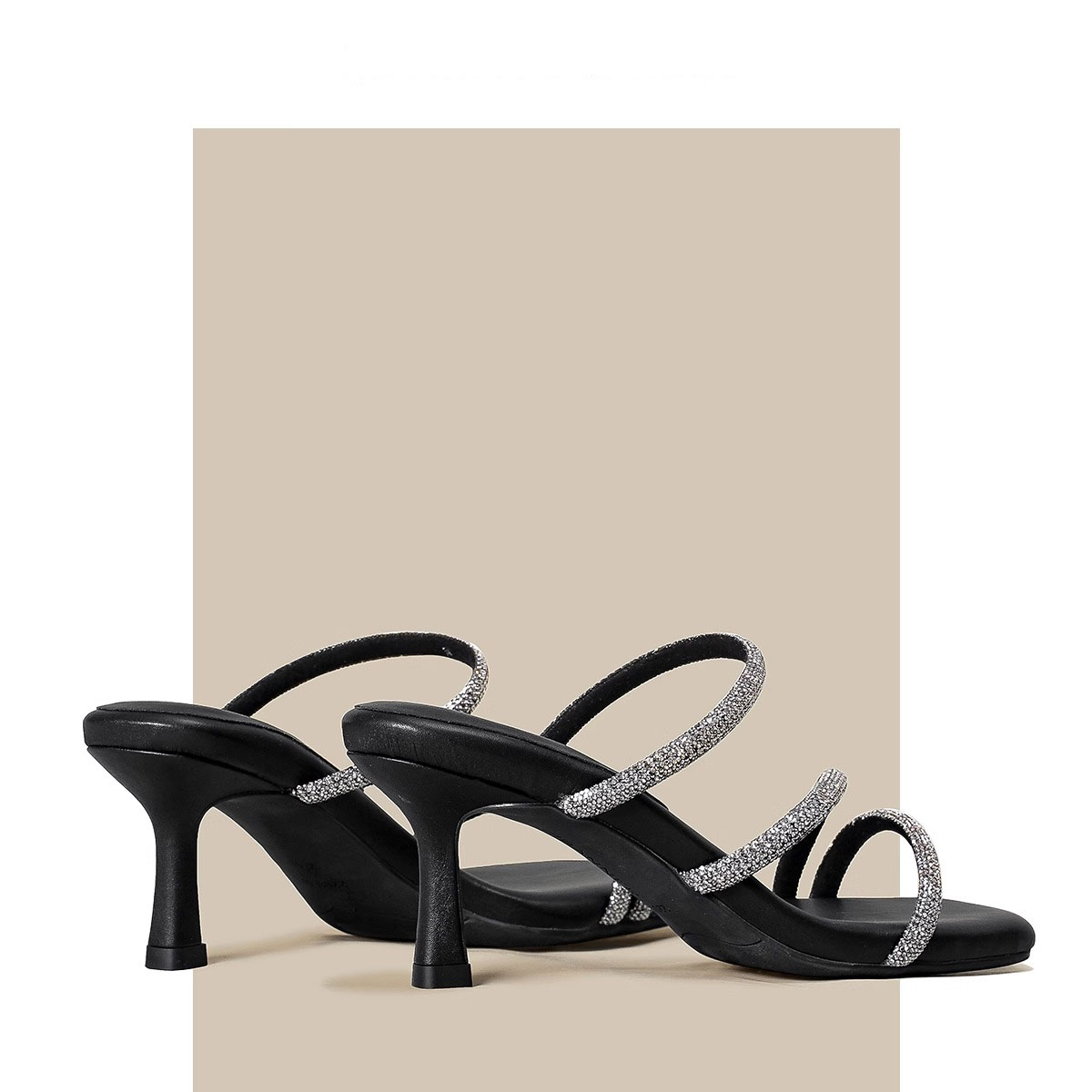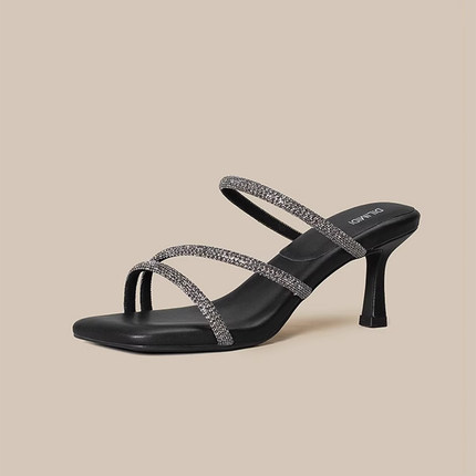 水钻带凉拖鞋女2025夏外穿高跟凉鞋女黑色高跟鞋女设计感小众粗跟