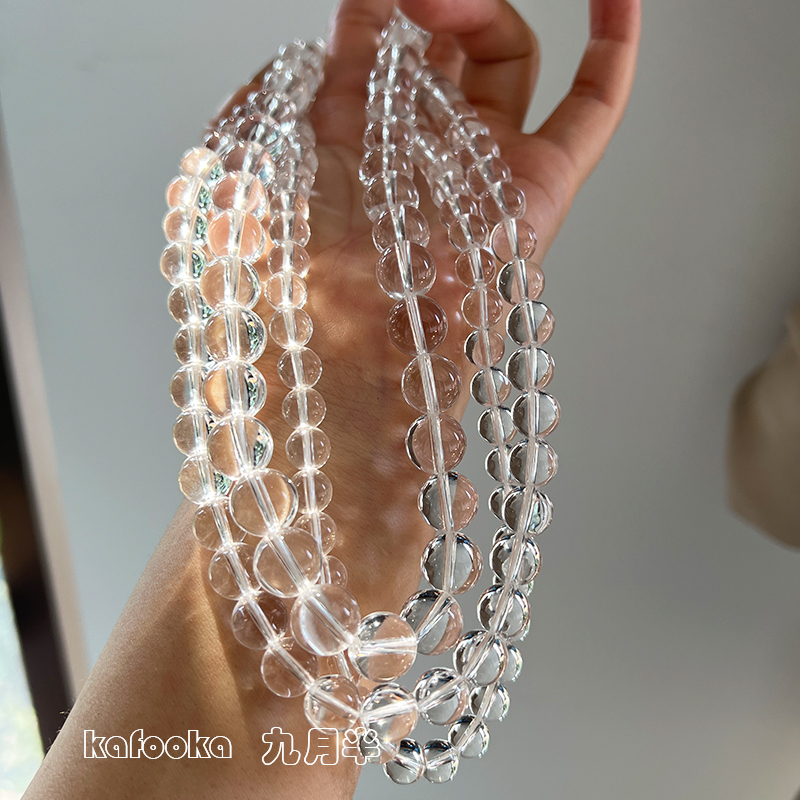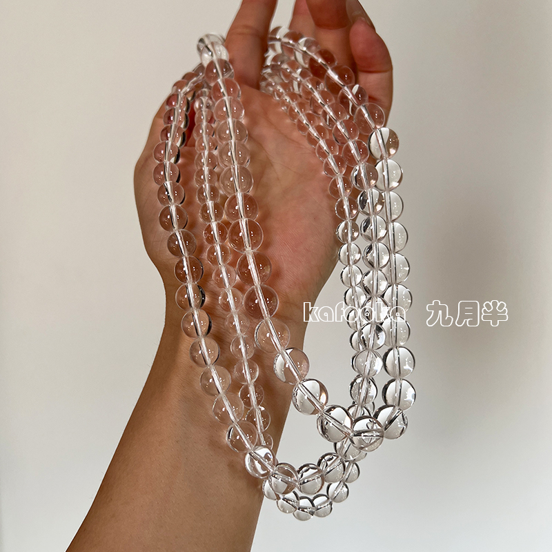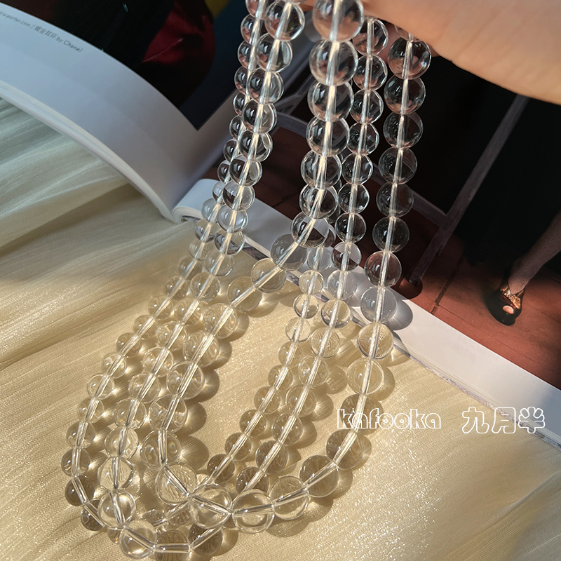 AA级12mm冰透净体巴西天然白水晶圆珠项链天然石串珠S925银锁骨链