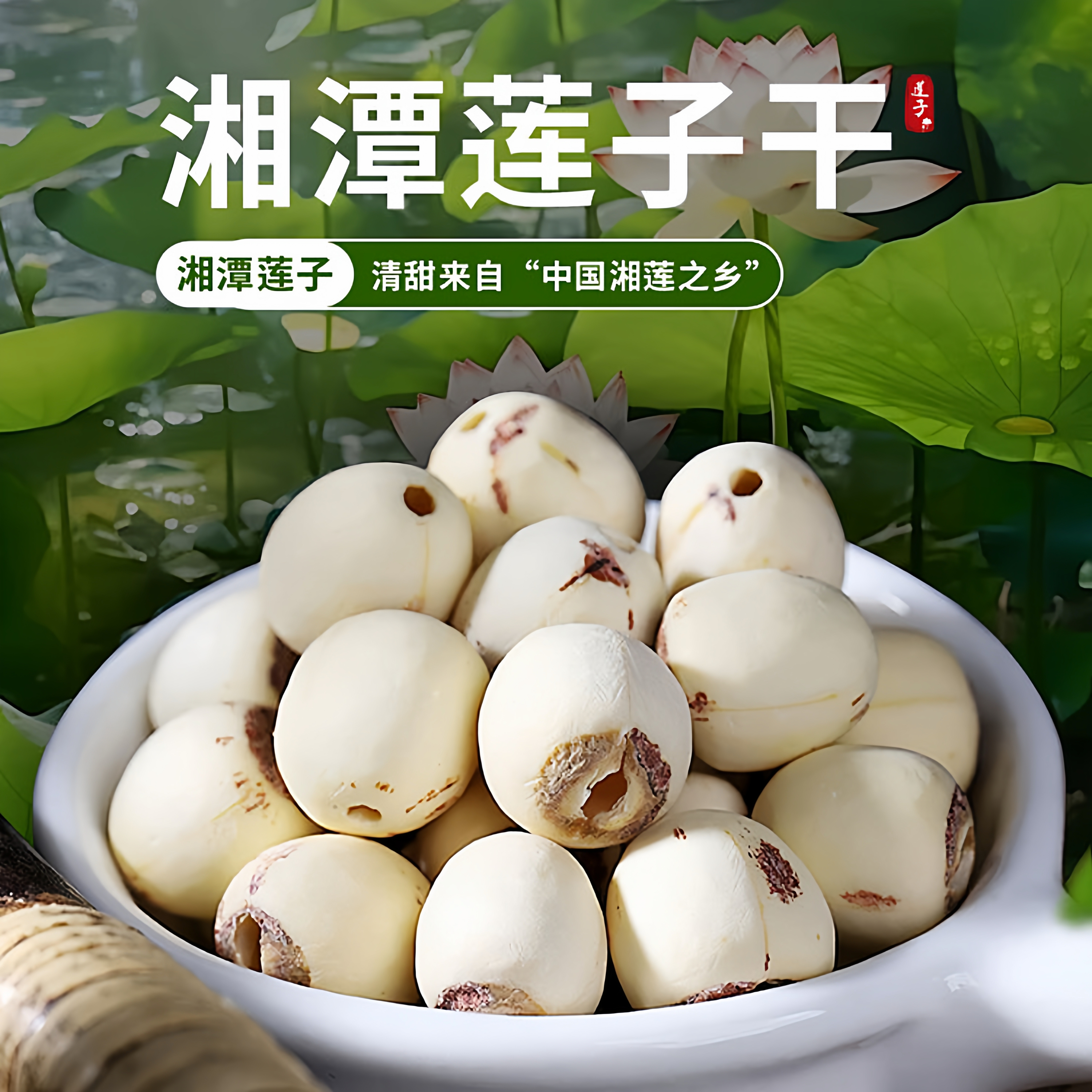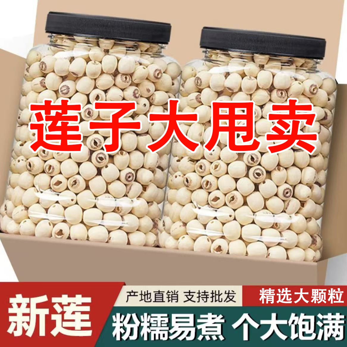 湖南湘潭2025年莲子去芯纯天然粉糯干货大颗粒无芯磨皮白莲子批发