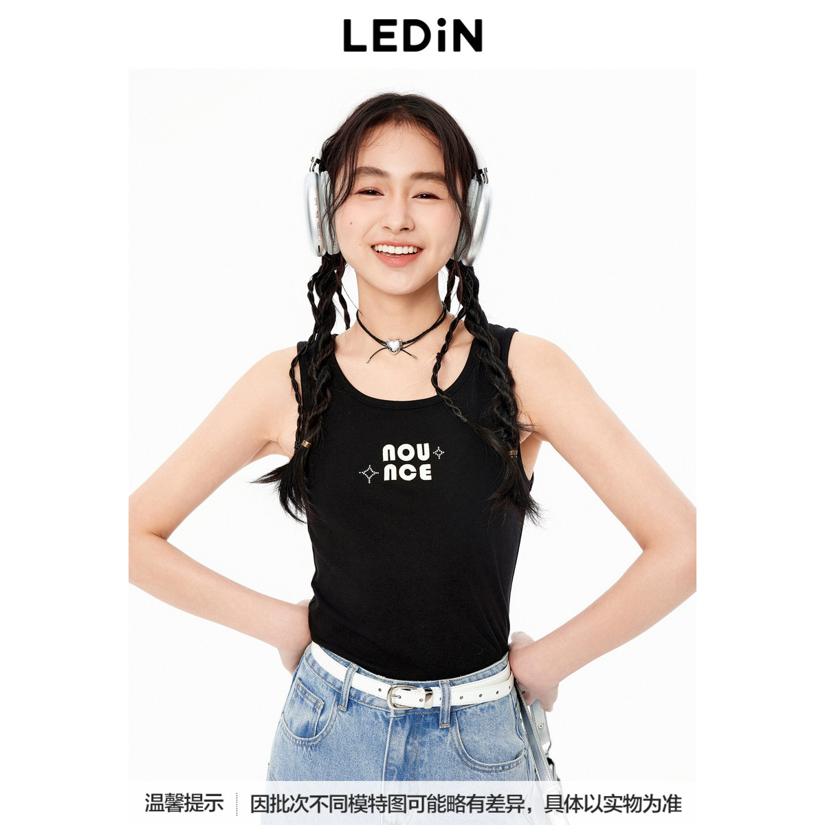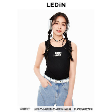 【商场同款】乐町秋季黑色百搭字母宽肩背心C2CQE3122