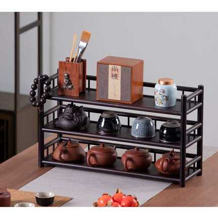 茶道茶具茶杯展示架架收纳三层博古架置物收纳小型博古架二层桌面