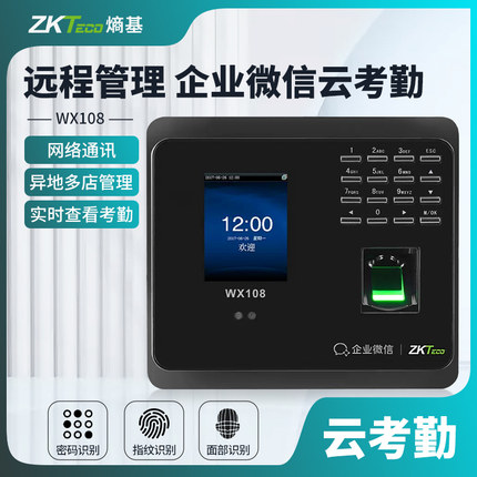 ZKTeco熵基 WX108企业微信人脸识别考勤机指纹打卡机手机APP打卡考勤机智能网络云考勤机上班签到机