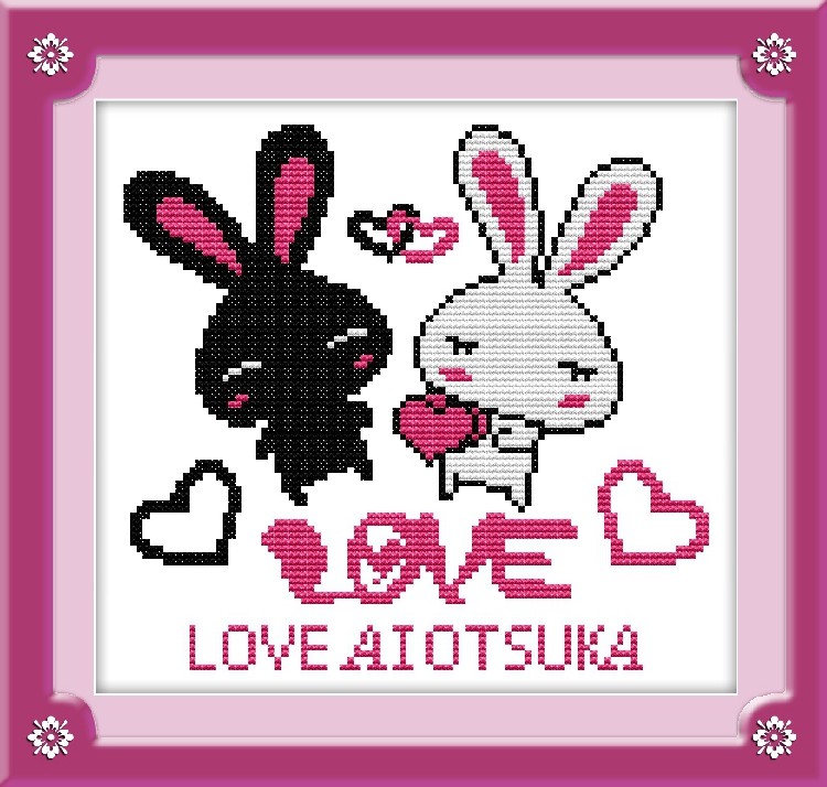 英文LOVE爱字两只可爱萌兔印花十字绣卧室新款简约小兔情侣线绣