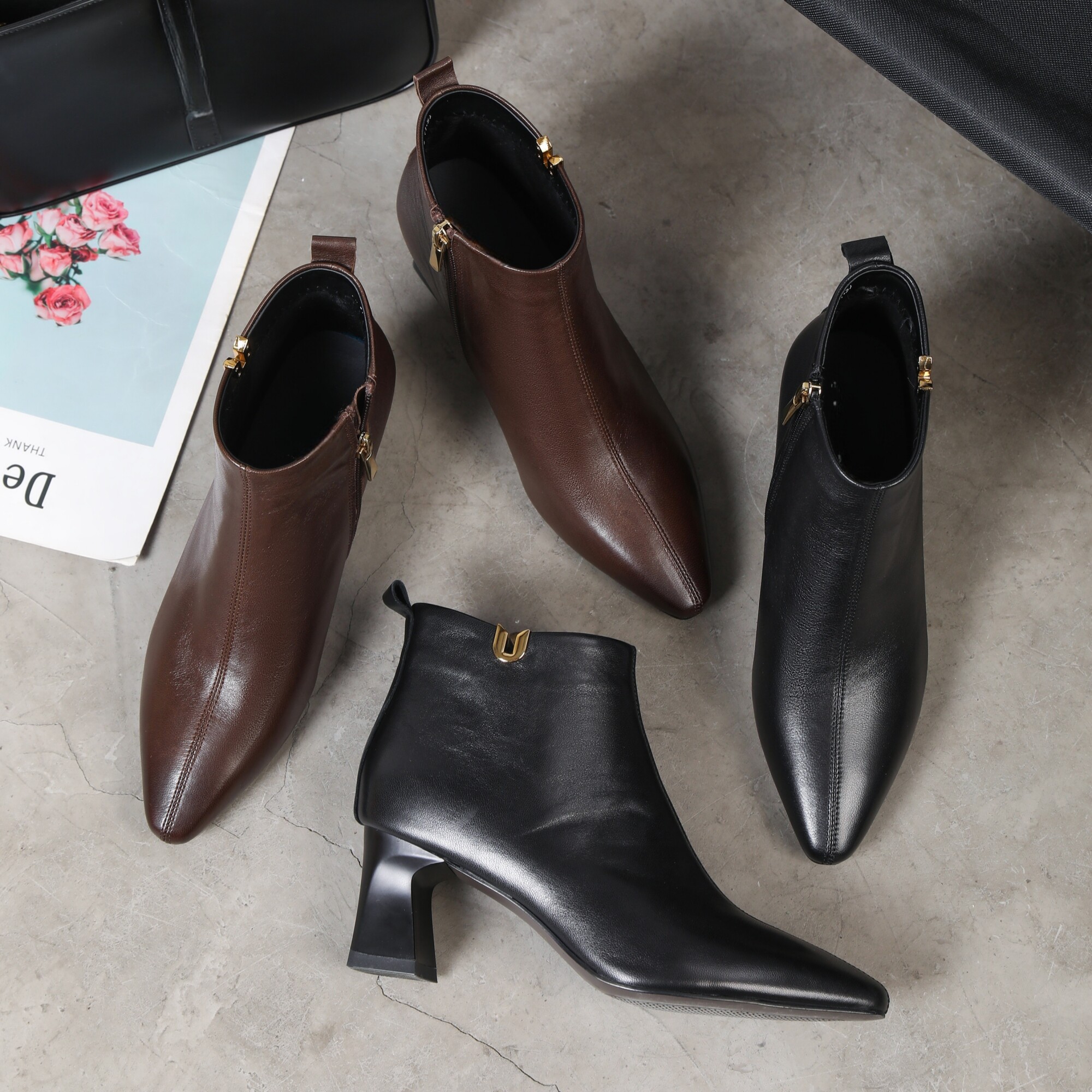 头层羊皮短靴女尖头粗跟高跟软底加绒冬季短筒女靴真皮2025新款