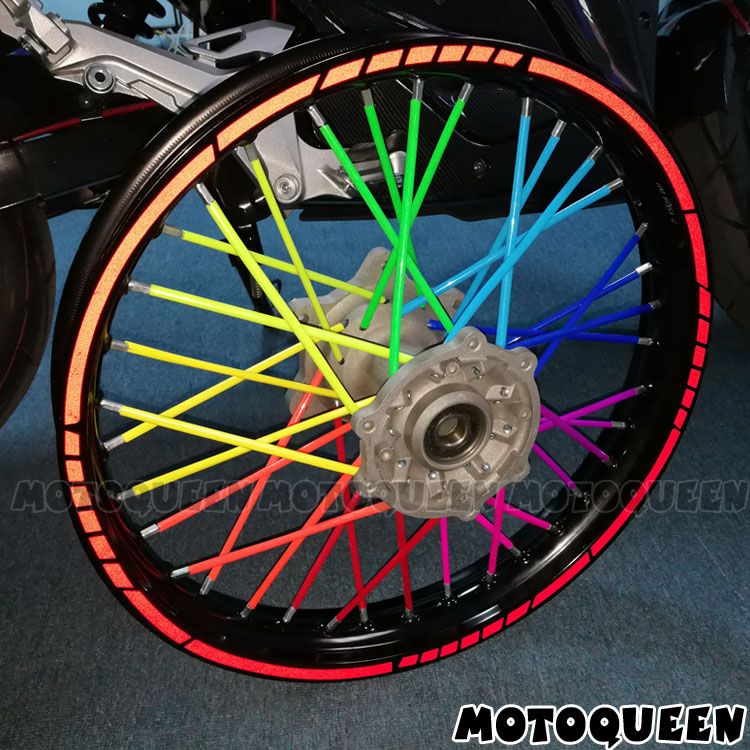 适用本田铃木川崎雅马哈摩托车轮毂贴花钢圈轮胎反光贴纸17/18寸