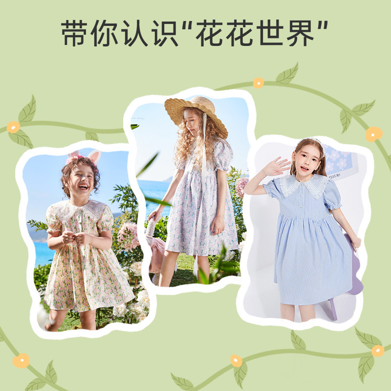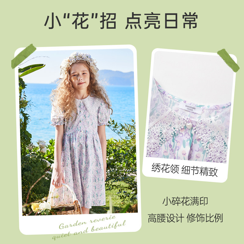 巴拉巴拉女童连衣裙儿童裙子夏季新款童装大童洋气碎花宝宝亲子装