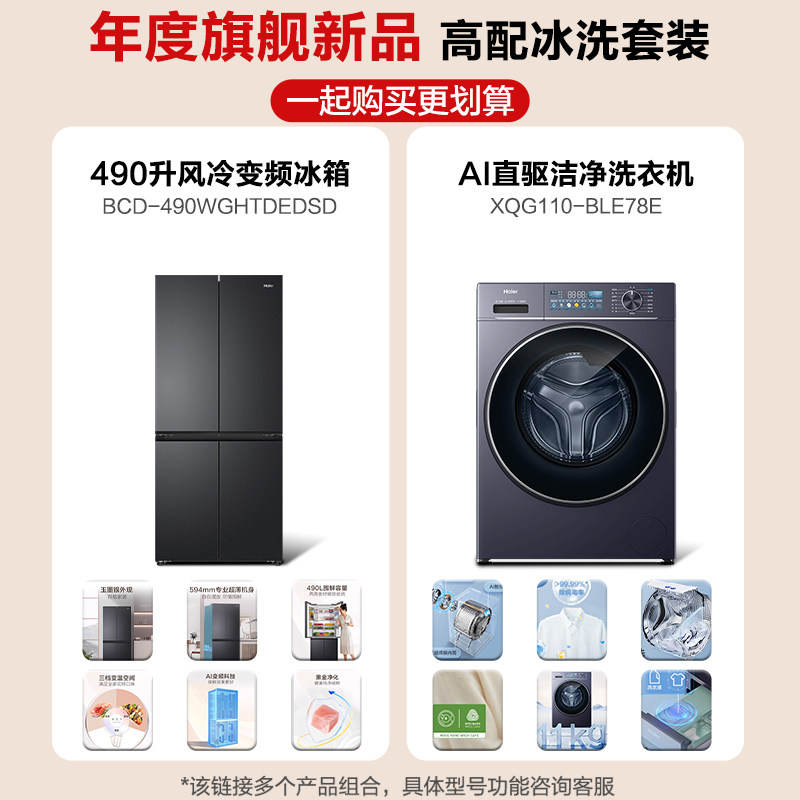 [云溪]海尔直驱11KG精华洗衣机78E超薄机身490L冰箱冰洗套装新款