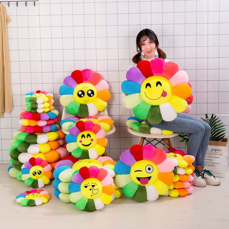 可爱七彩太阳花坐垫毛绒玩具抱枕办公室椅子垫学生幼儿园屁股垫子