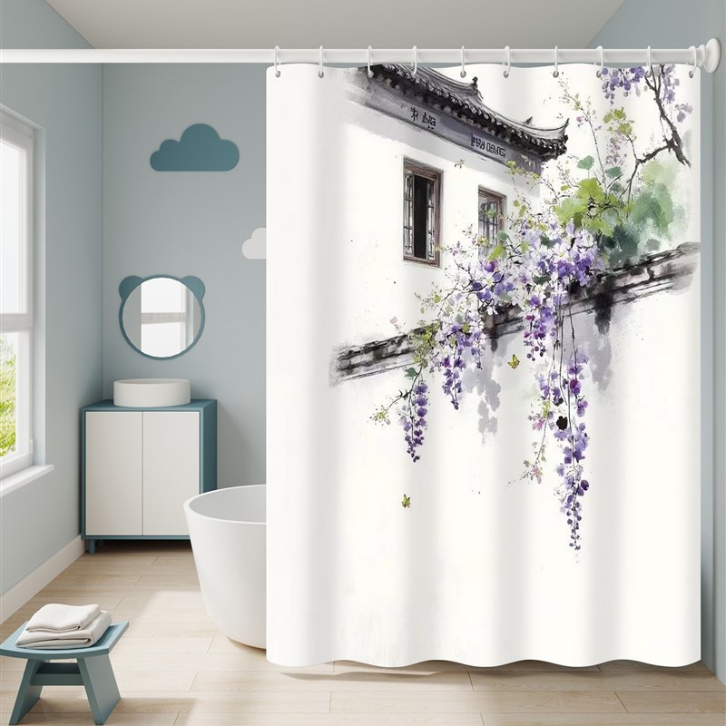 水墨风浴室加厚简约大气浴帘卫生间防水免打孔防霉淋浴隔断浴帘