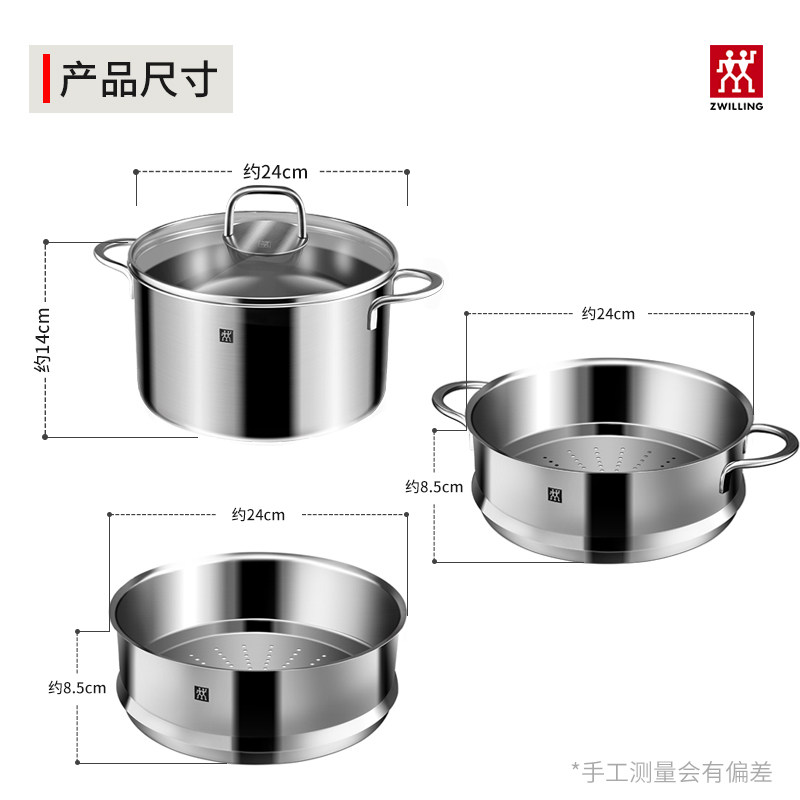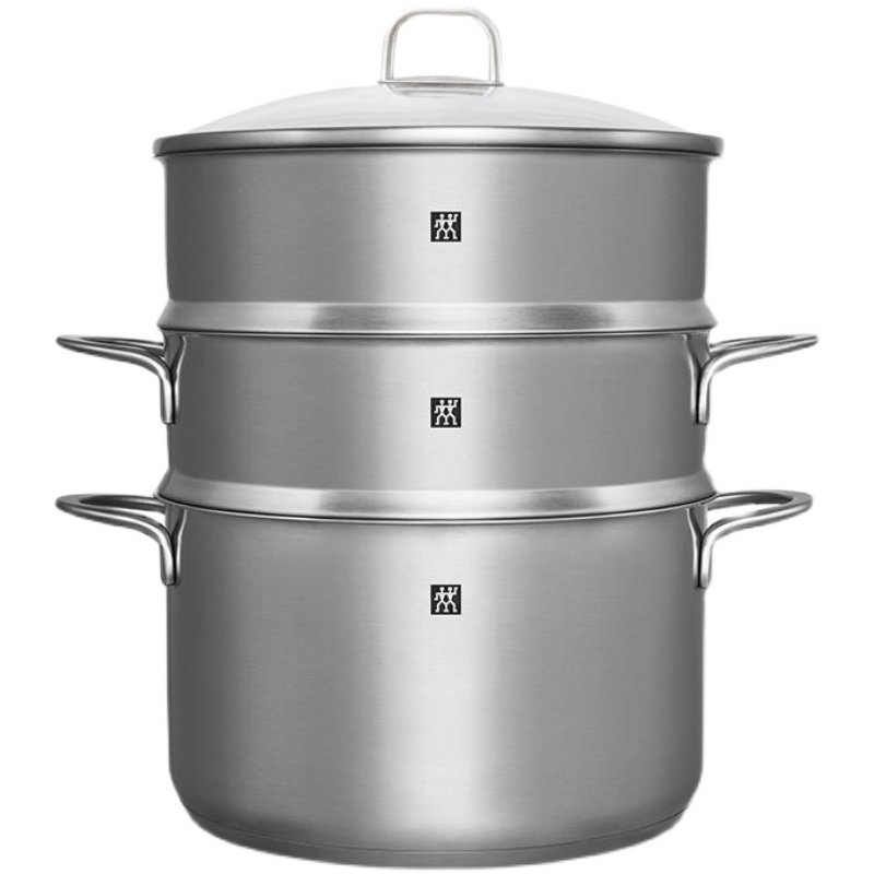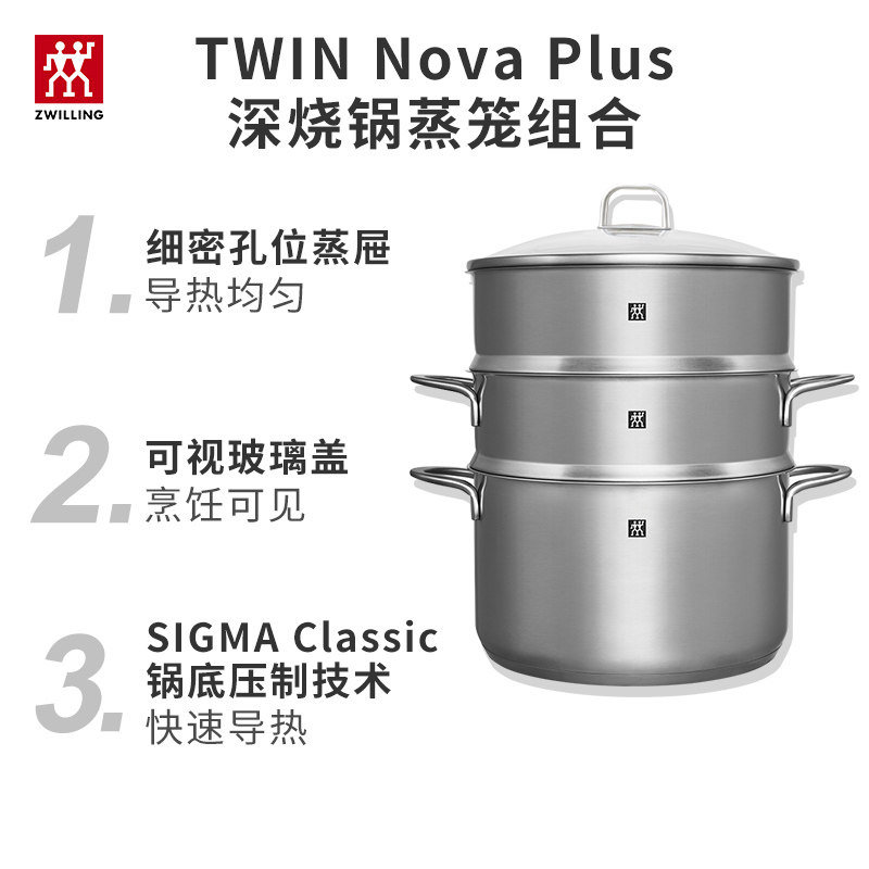 双立人Nova汤锅蒸笼三件套24cm蒸锅家用304不锈钢多层蒸屉蒸煮锅