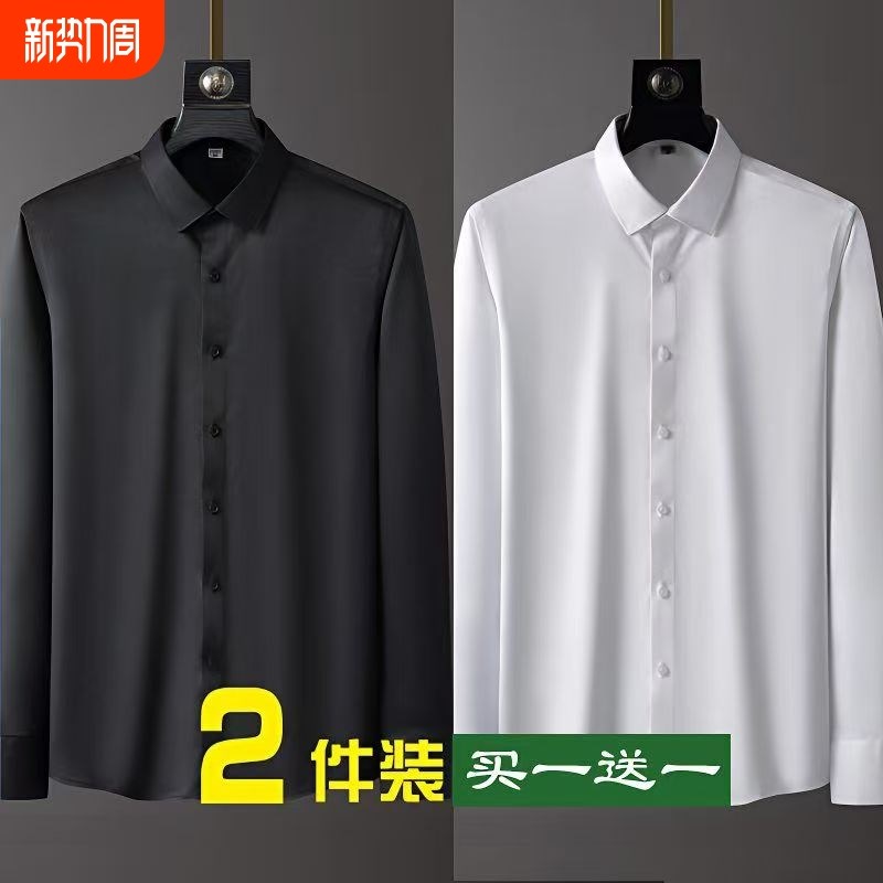 白衬衫男士长袖春秋季商务休闲免烫抗皱宽松黑色绅士衬衣正装寸衫