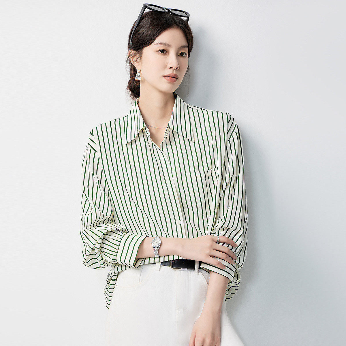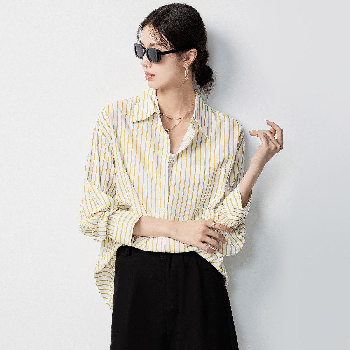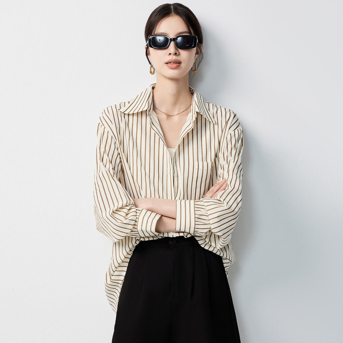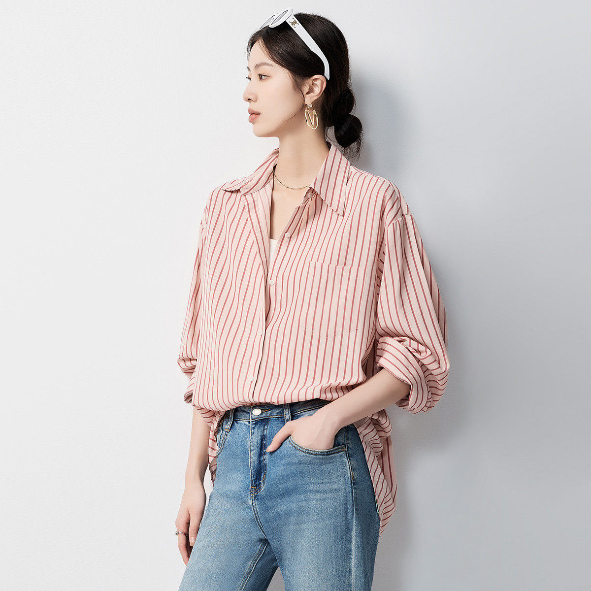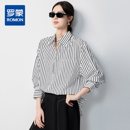 罗蒙春夏条纹长袖衬衫女士时尚休闲宽松舒适通勤百搭衬衣女上衣