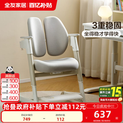 全友家居2025新款动态追背儿童学习椅小学生家用写字椅子靠背椅
