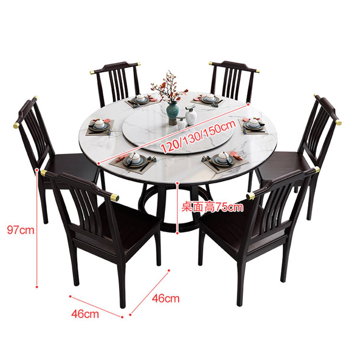 新中式实木岩板大圆桌家用轻奢酒店圆形大理石餐桌椅组合带转盘