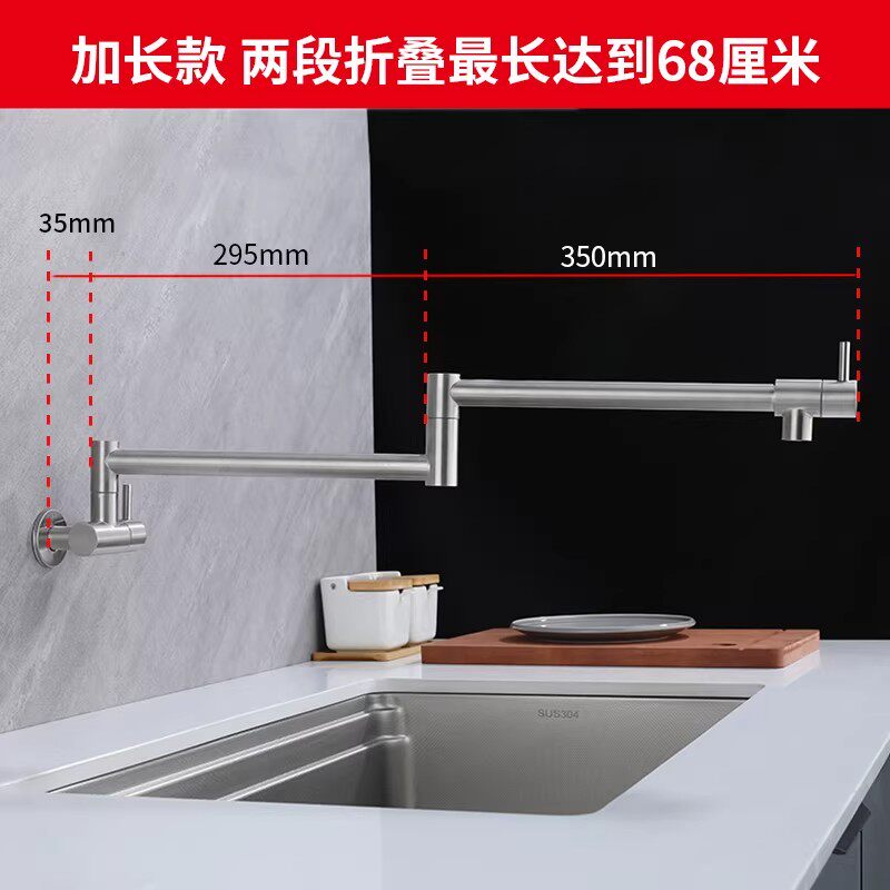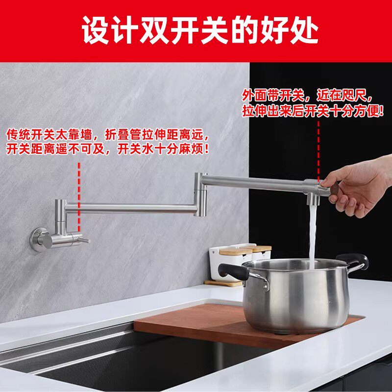 不锈钢厨房水龙头入墙式可旋转墙出可折叠灶台水槽洗菜盆加厚加长