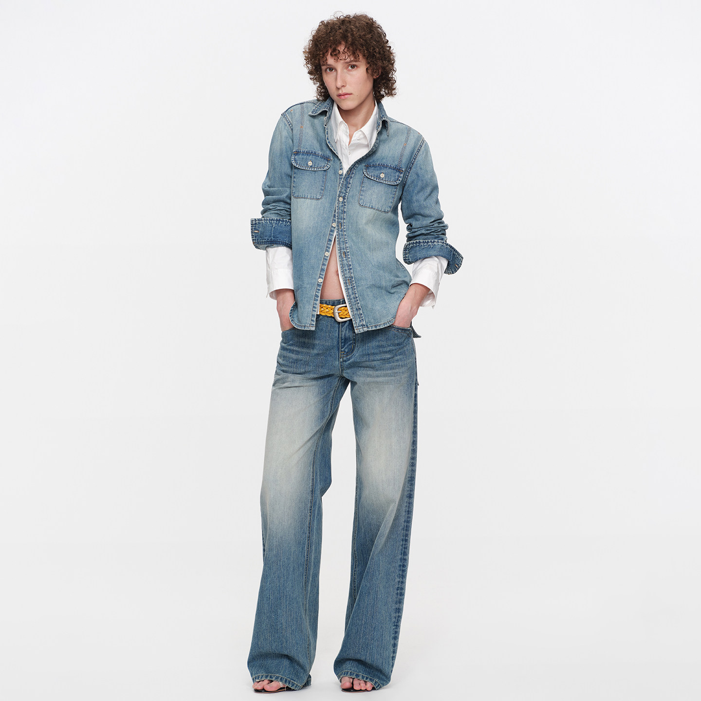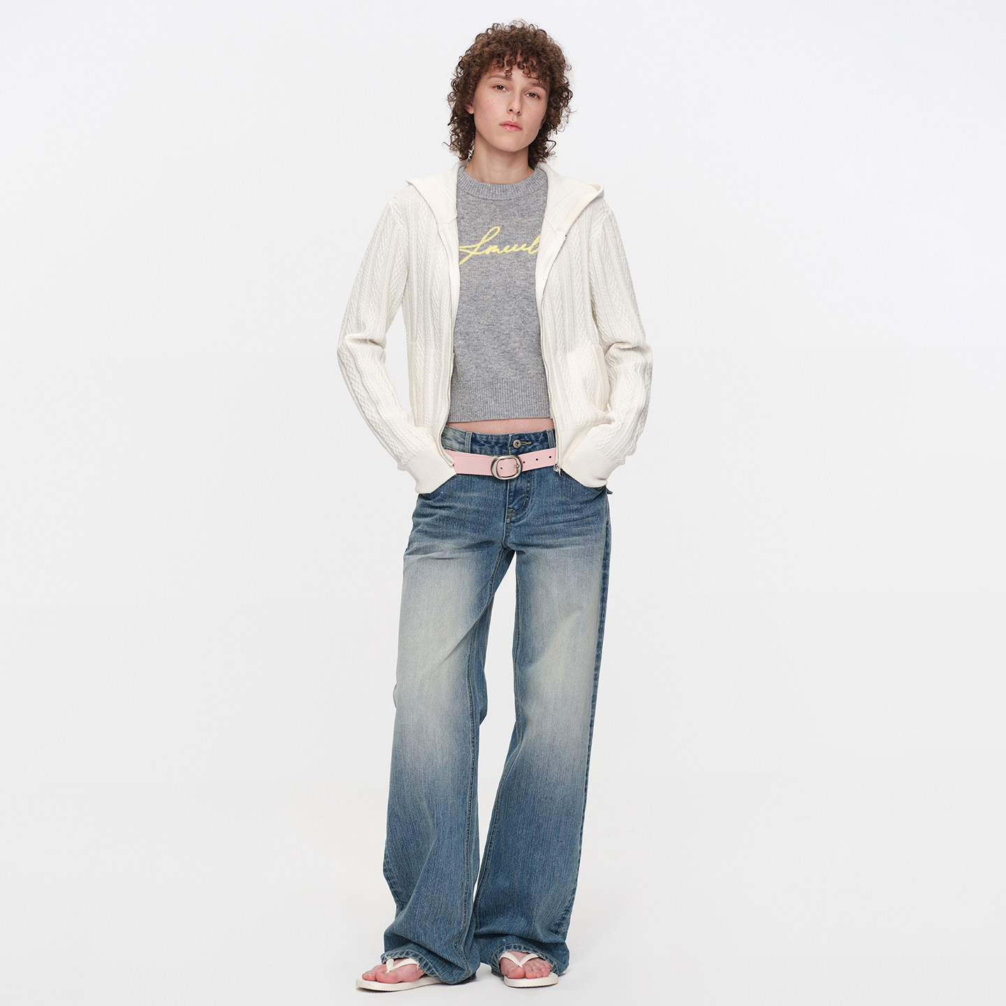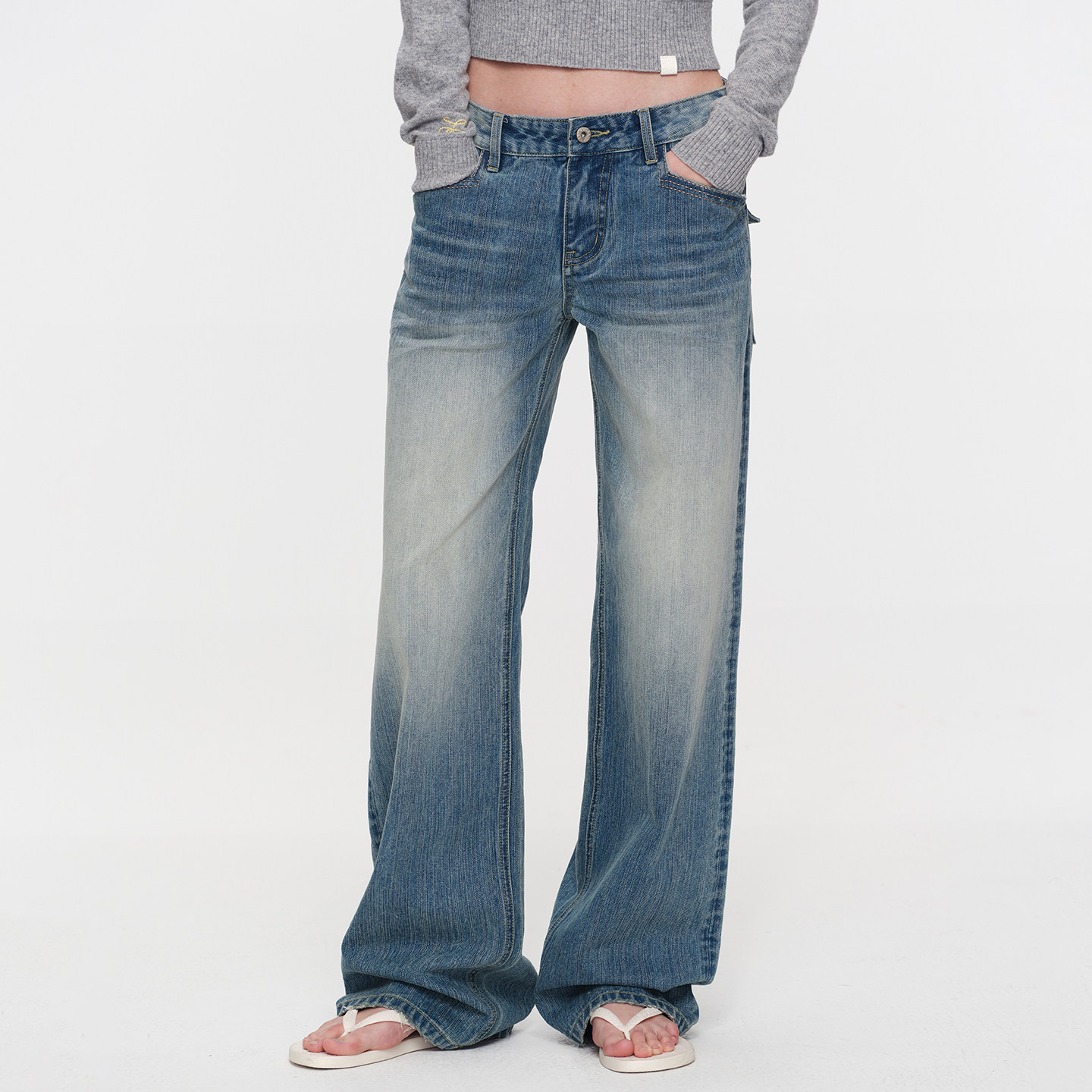 SMIIILE复古水洗做旧阔腿牛仔裤