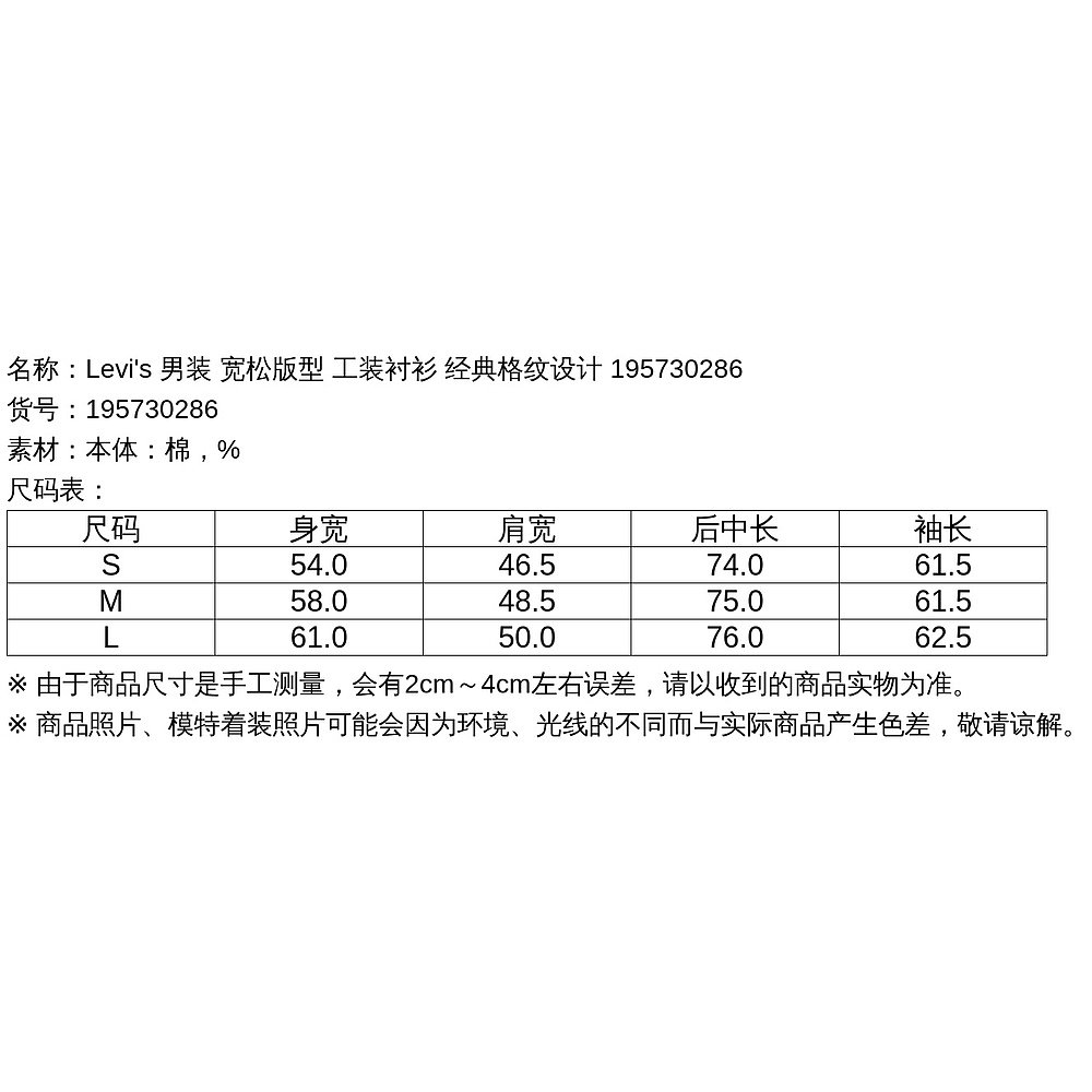 1h可退 日本直邮Levi's 男装 宽松版型 工装衬衫 经典格纹设计 19