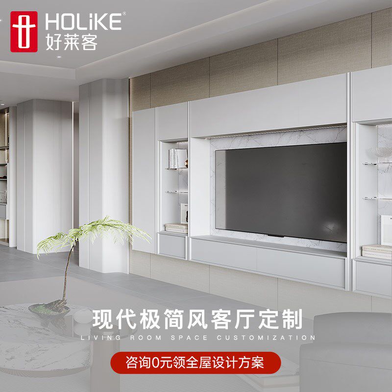 好莱客满墙电视柜定制电视背景书架电视墙设计客厅满墙柜全屋定制