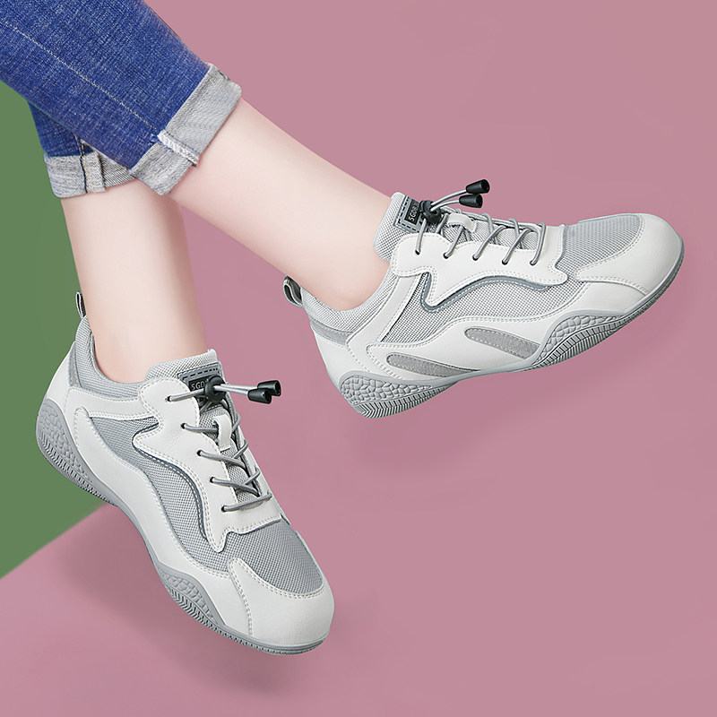 颜值春季新款女士运动鞋轻便休闲旅游网面单鞋春秋软底真皮阿甘鞋