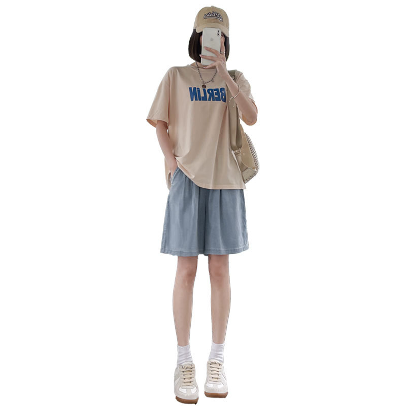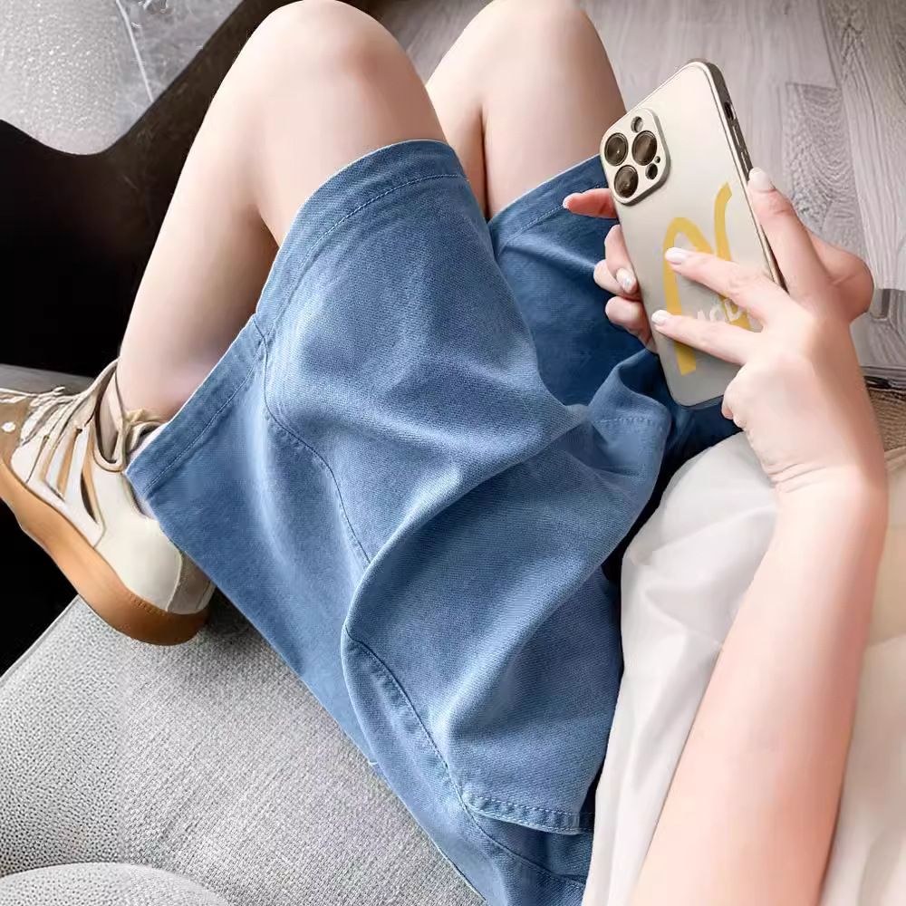 天丝牛仔短裤女夏季薄款2025新款高腰宽松a字阔腿中裤冰丝五分裤
