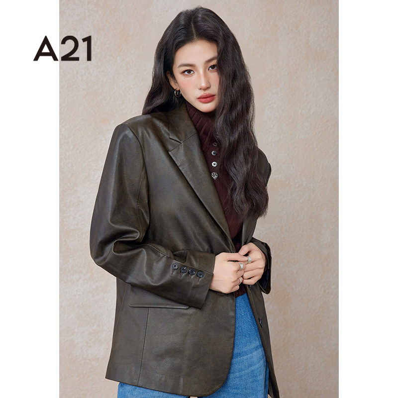 女装象牙白短外套翻领宽松落肩长袖短款上衣