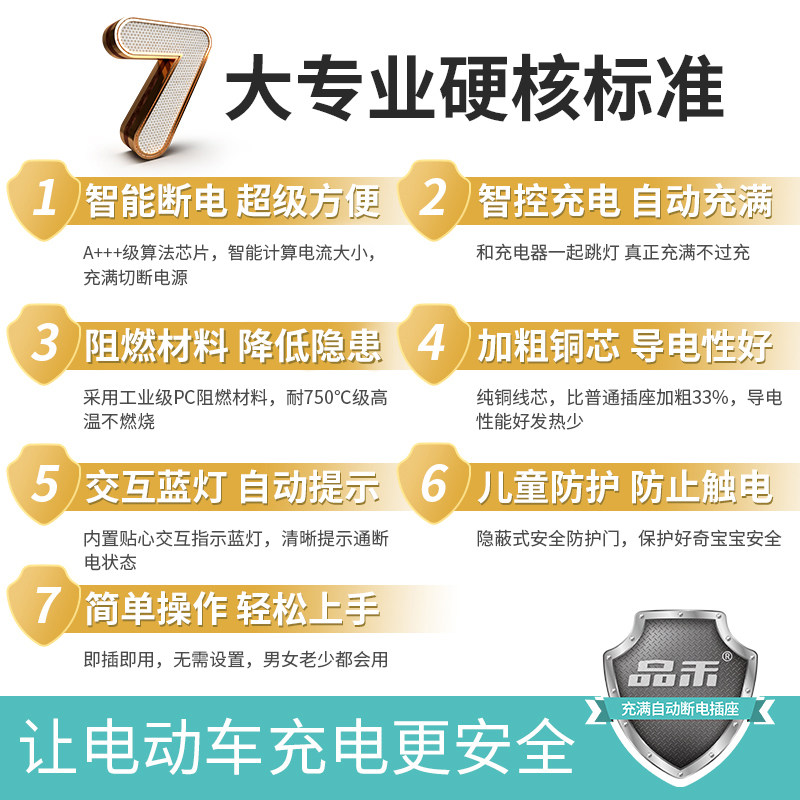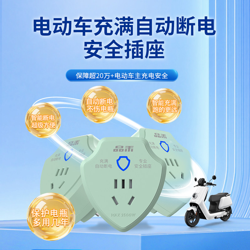 品禾电瓶车电动三轮车充电保护器自动断电插座防过充安全智能定时