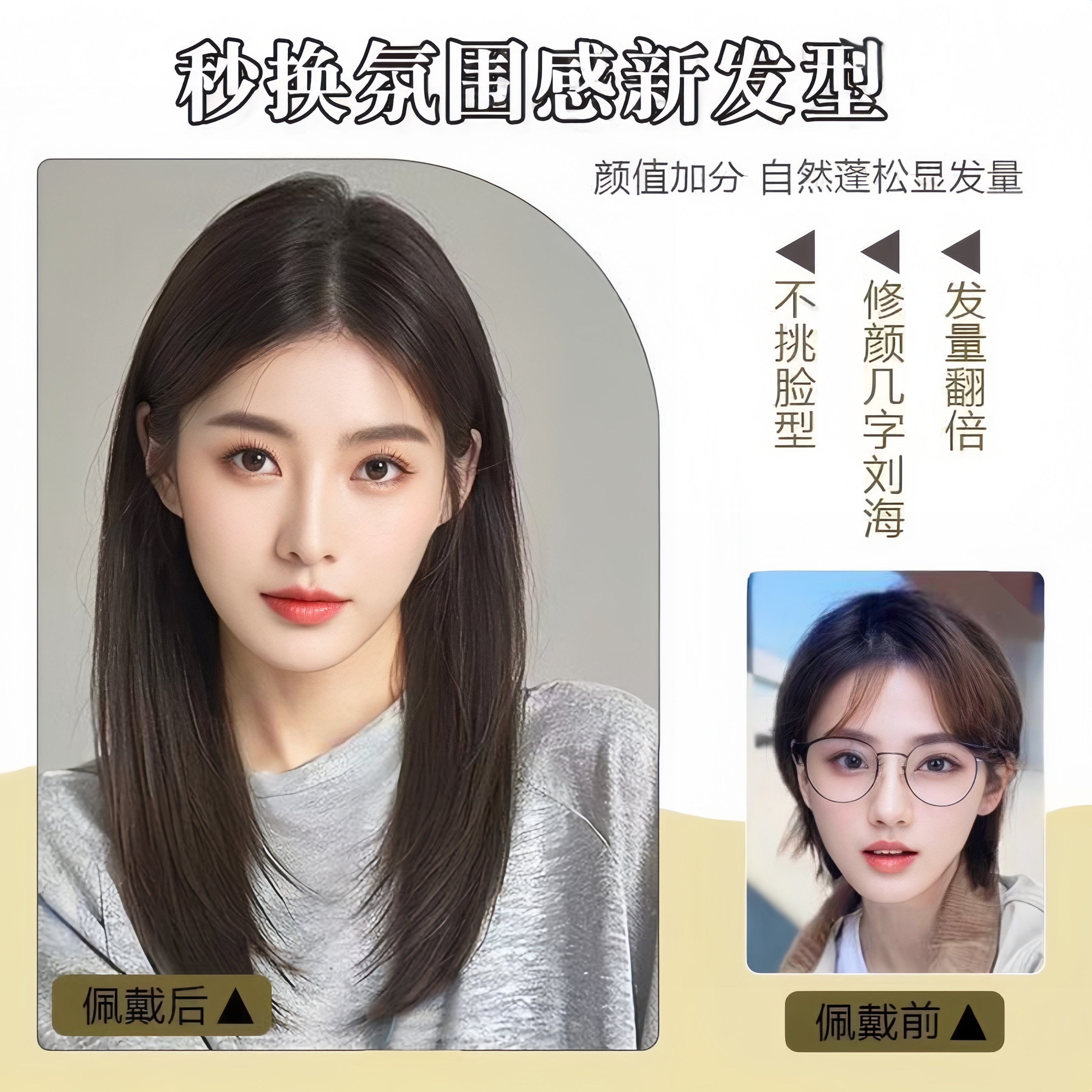 初恋感中分锁骨发甜美不用发网假头发头顶日常补发自然蓬松补发片