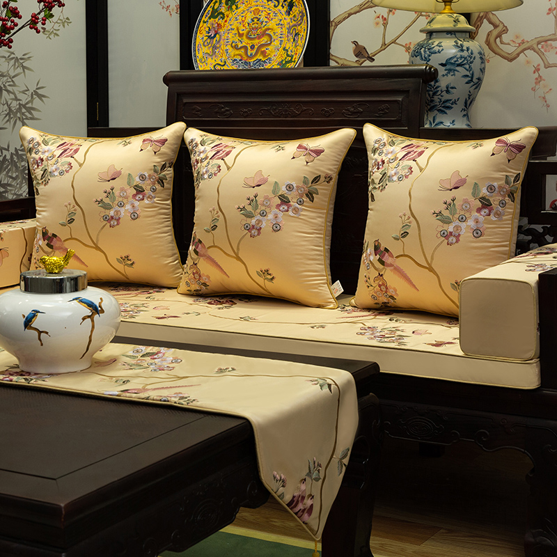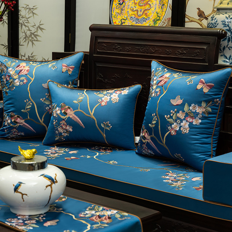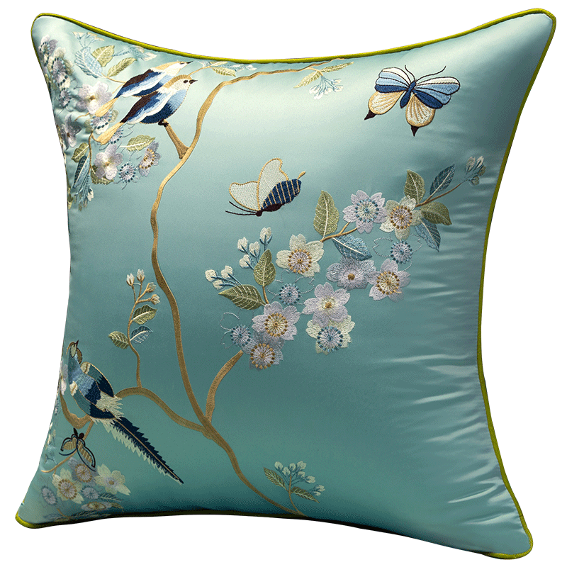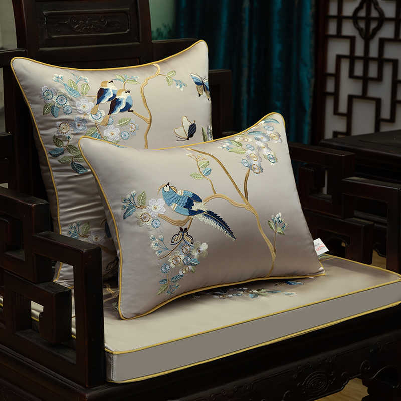 花鸟精美刺绣高精密绸缎沙发垫