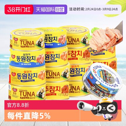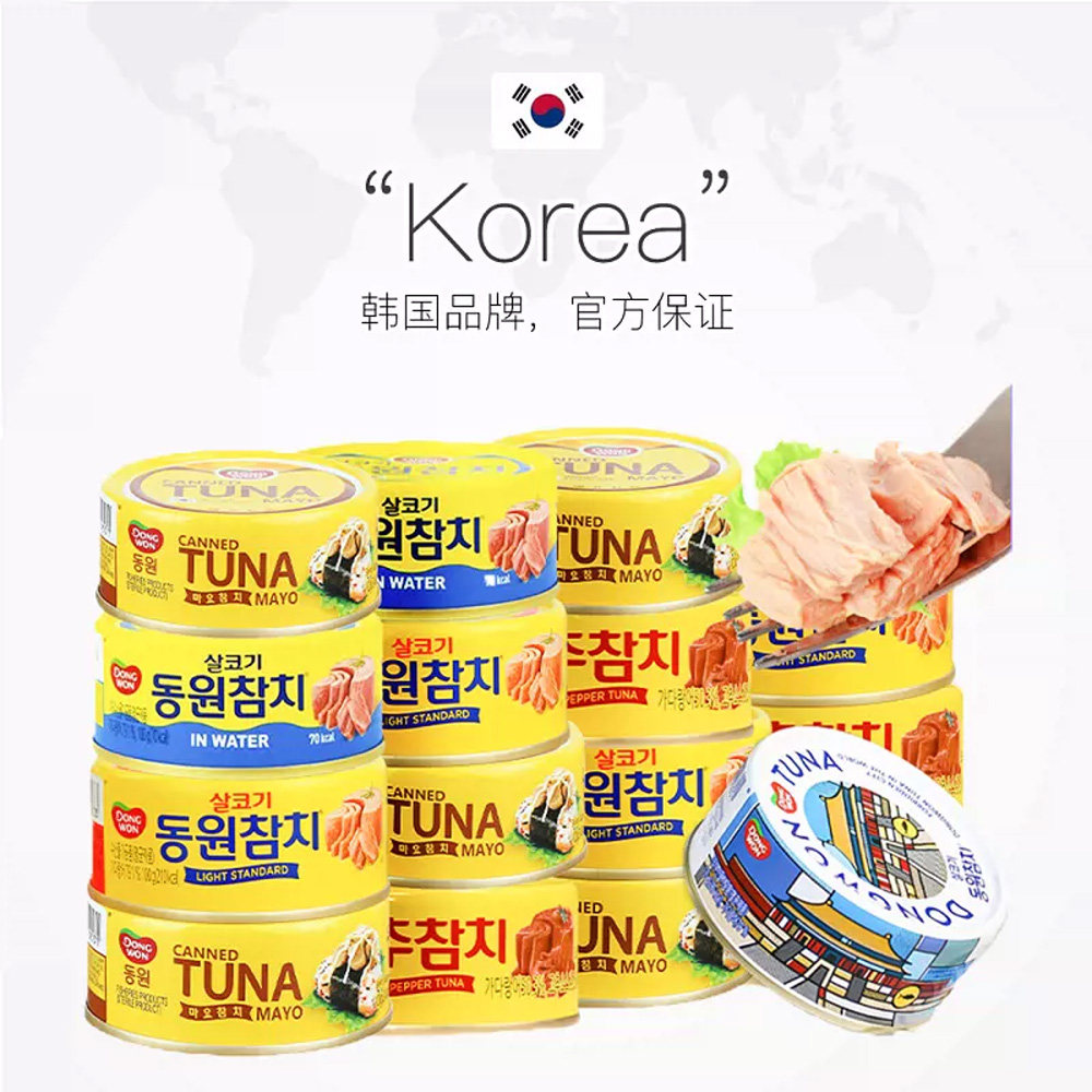 【自营】韩国东远金枪鱼罐头油浸吞拿鱼水浸寿司专用三文块蛋黄肉