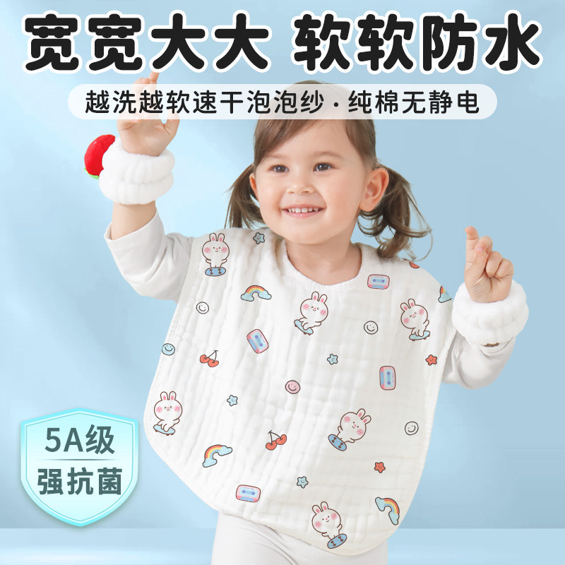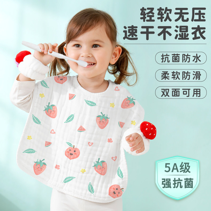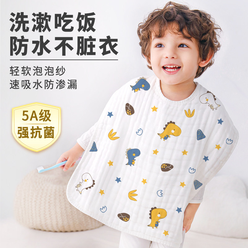 儿童洗漱巾不湿衣宝宝刷牙洗脸防水围兜纯棉围嘴毛巾多功能口水巾