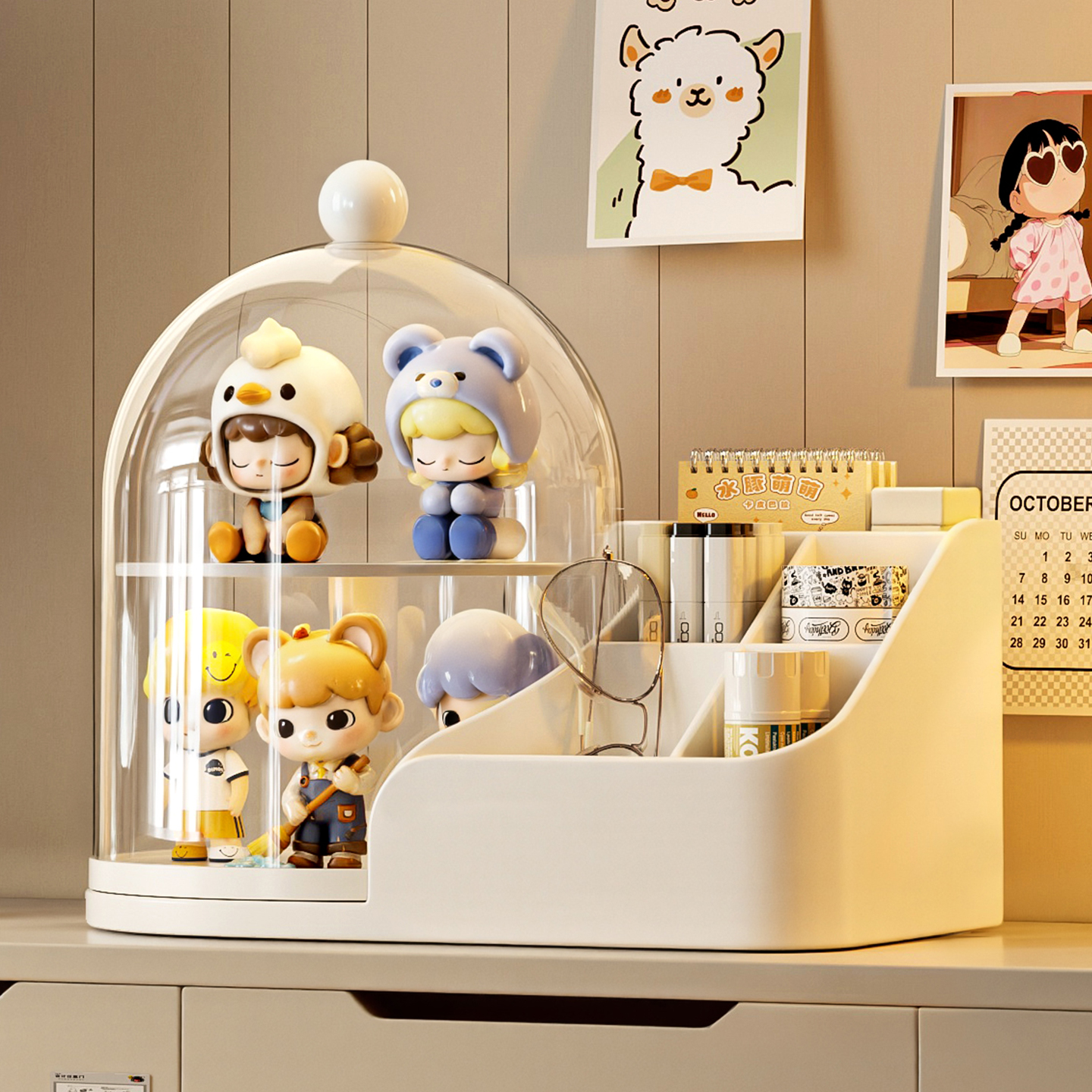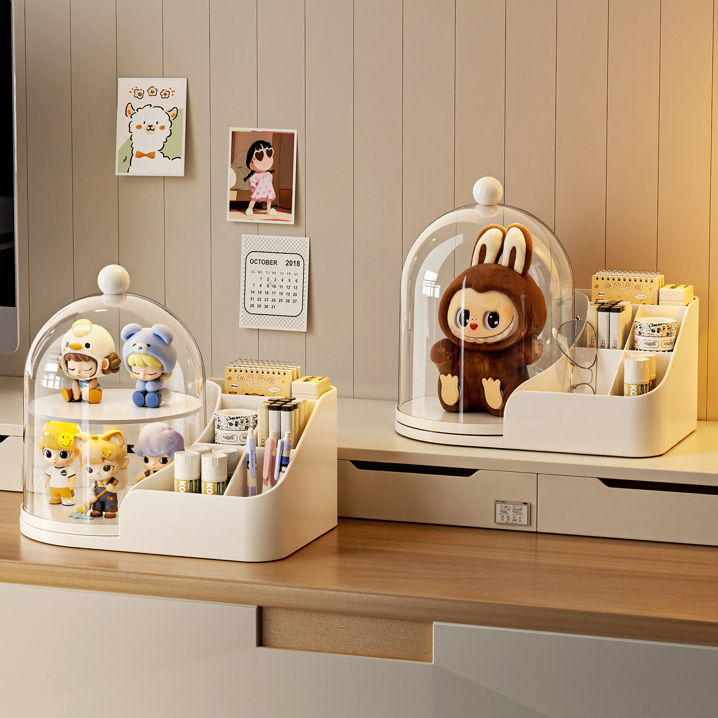 桌面收纳盒多功能文具盒书桌分格笔筒labubu手办盲盒收纳展示架