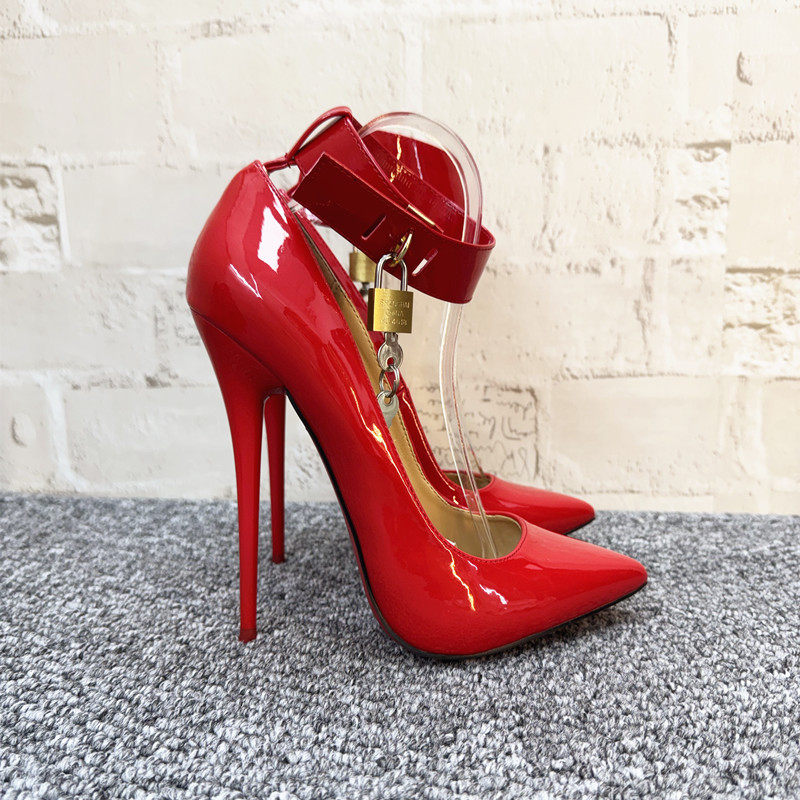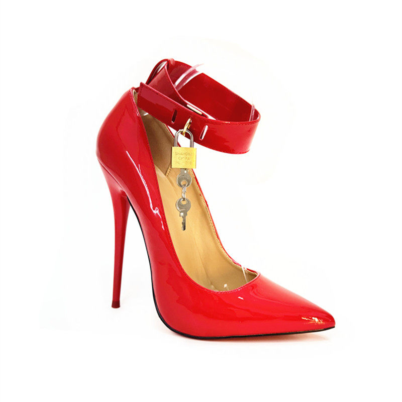 夏季新款16厘米细高跟尖头鞋优雅一字带锁性感情趣大码高跟鞋14CM
