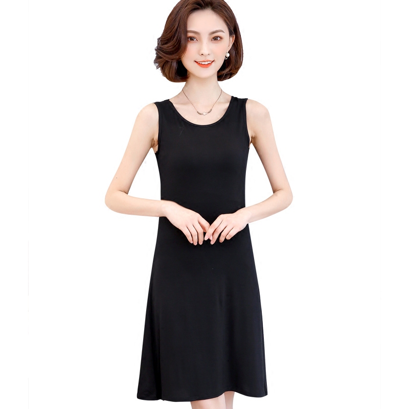 新款连衣裙女夏季莫代尔百搭宽松中长款大码无袖吊带背心打底裙子