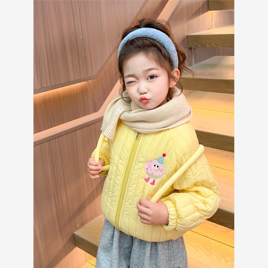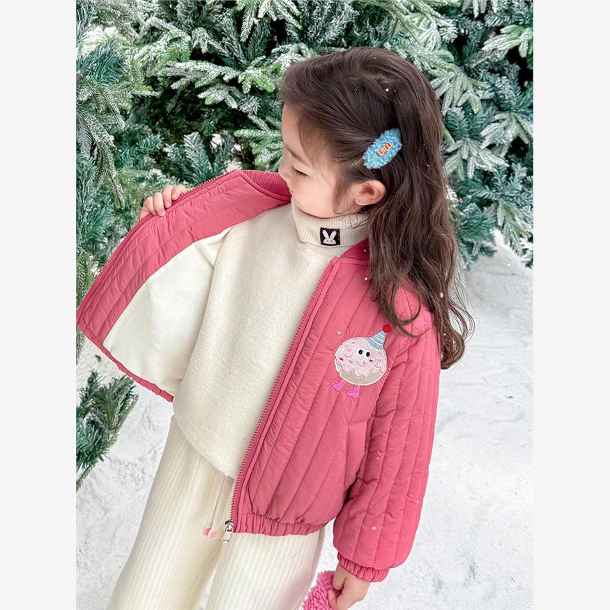 女小童卡通加厚棉服秋冬款女宝宝加绒棒球服冬装小女孩保暖外套潮