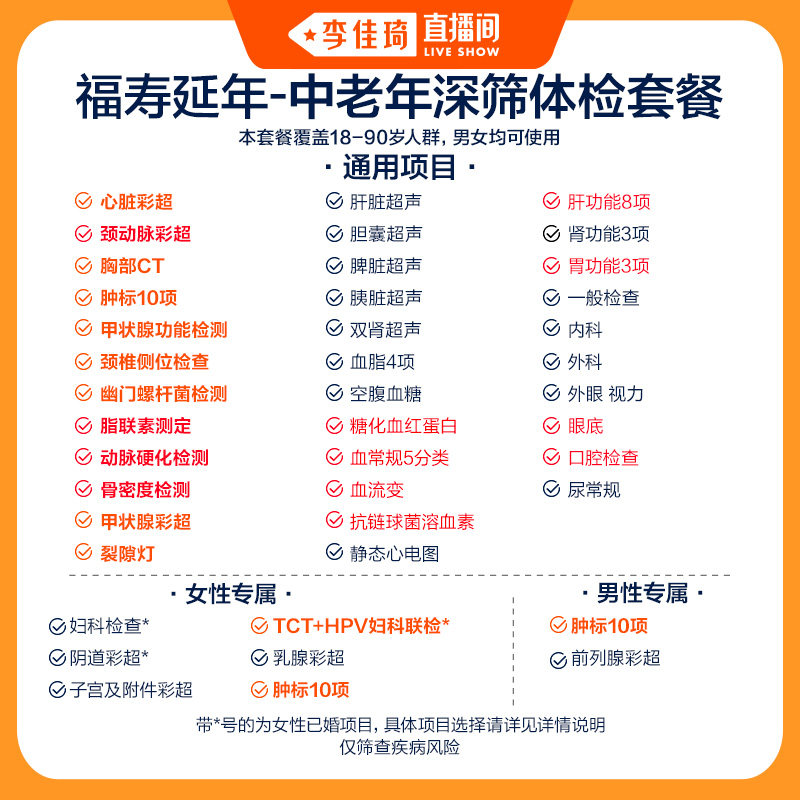 【李佳琦宠物&家装潮电节】美年大健康悦享健康福寿延年体检