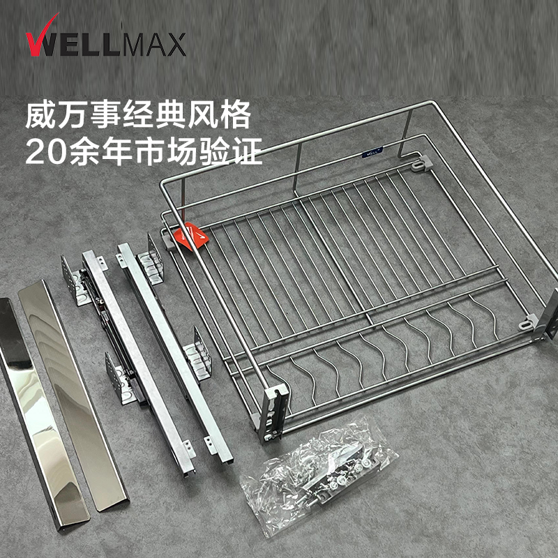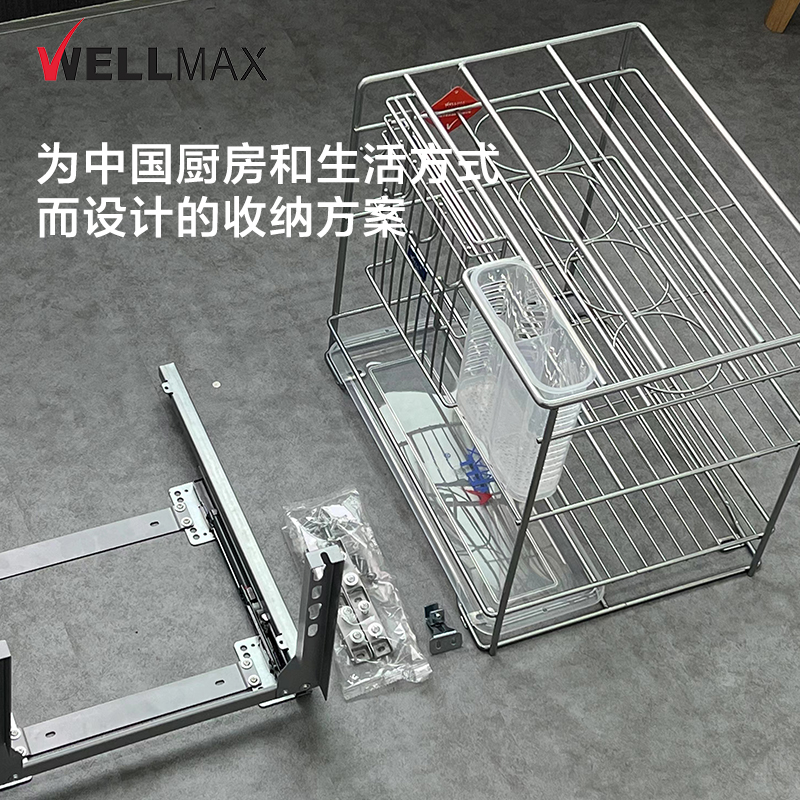 威万事wellmax厨房拉篮橱柜碗盘篮厨房抽屉双层防锈碗盘篮套装NJ