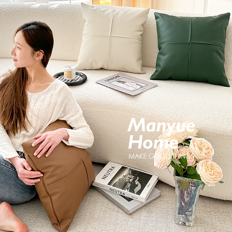 蔓越家 复古PU皮面十字纹抱枕客厅沙发午睡腰靠枕床头靠垫不含芯