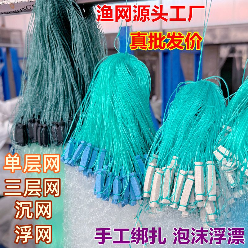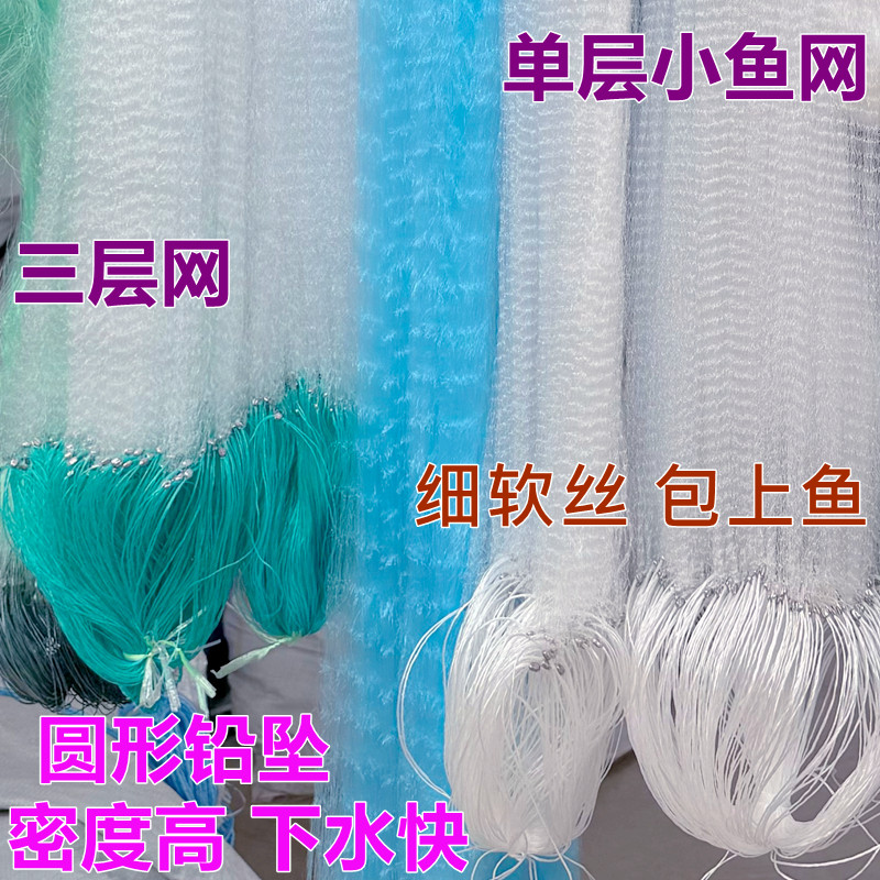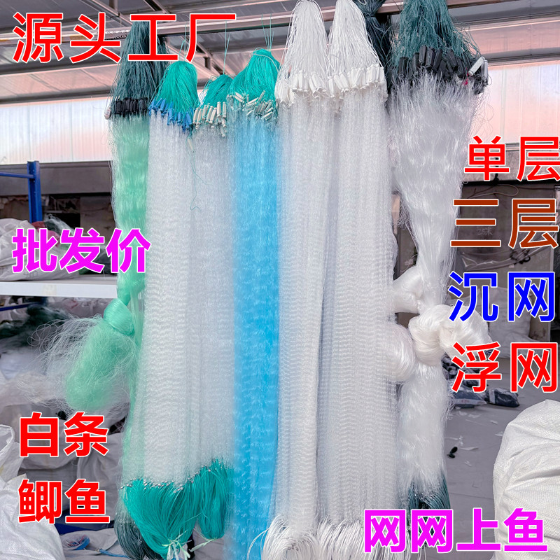 渔网三层沉网捕鲫鱼网浮网翘嘴马口1指半指挂白条沾丝网单层粘网