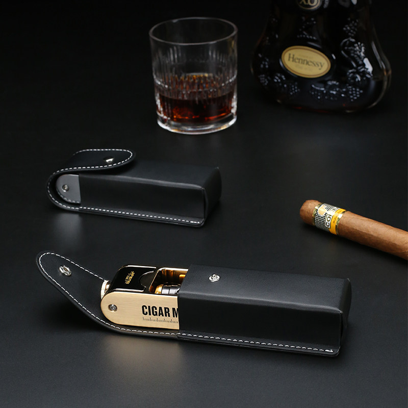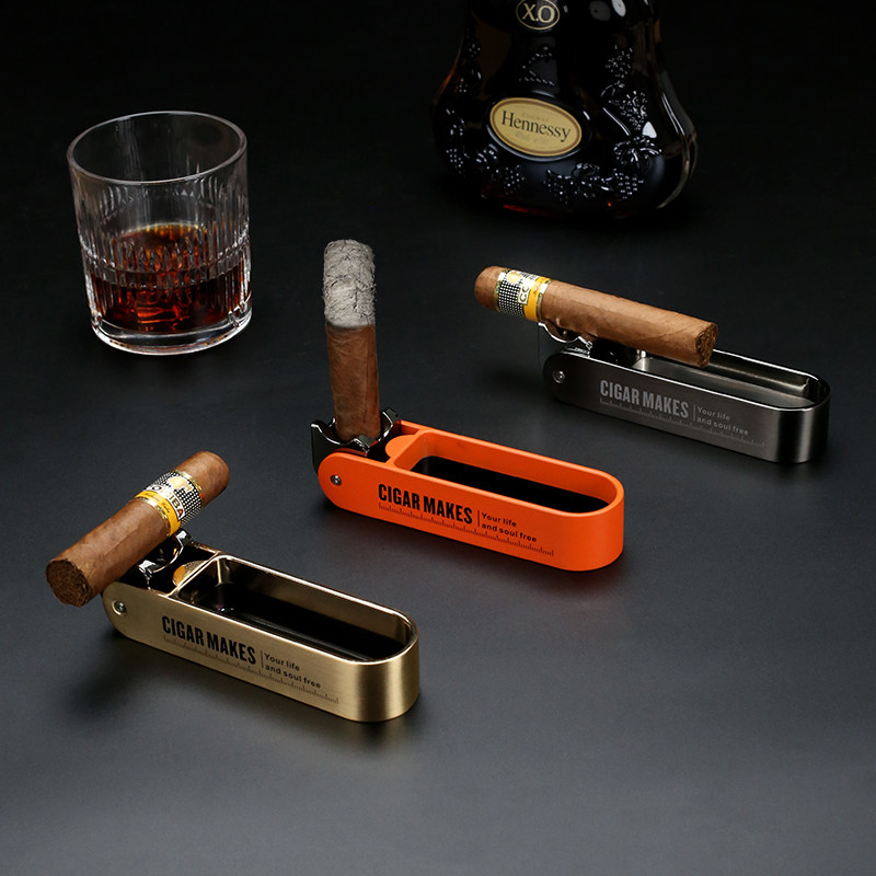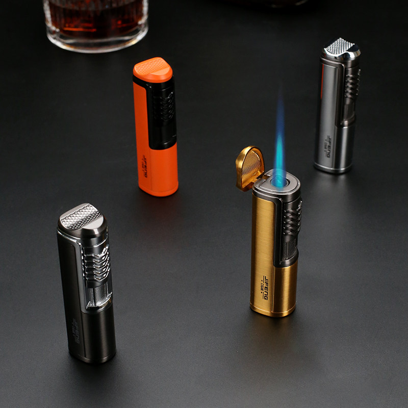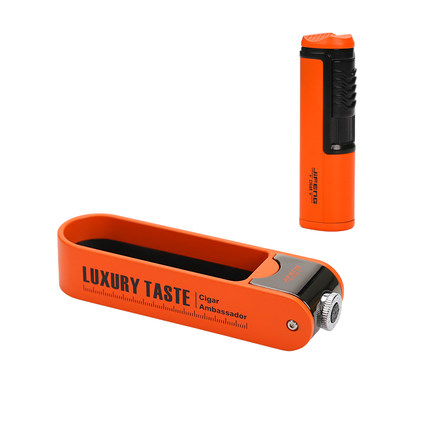 JIFENG季风金属带开孔器雪茄烟灰缸充气打火机套装组合持烟灰