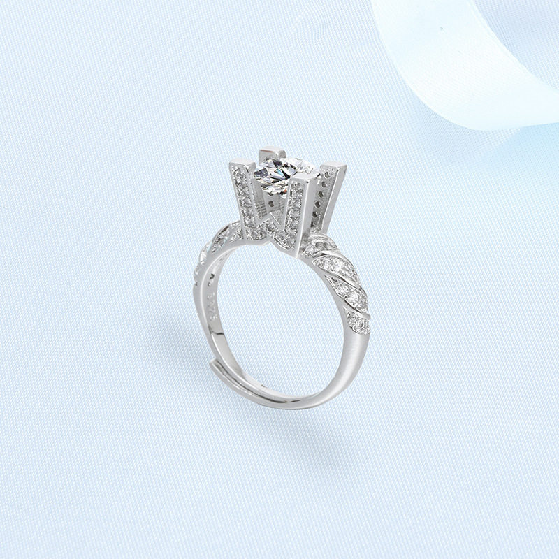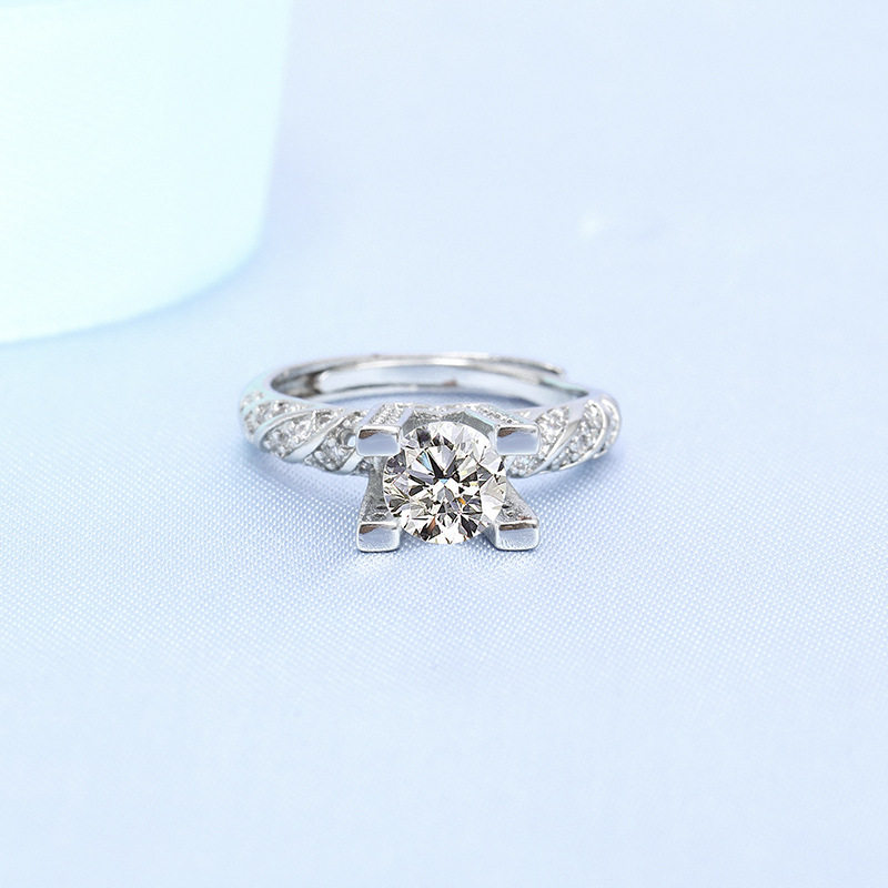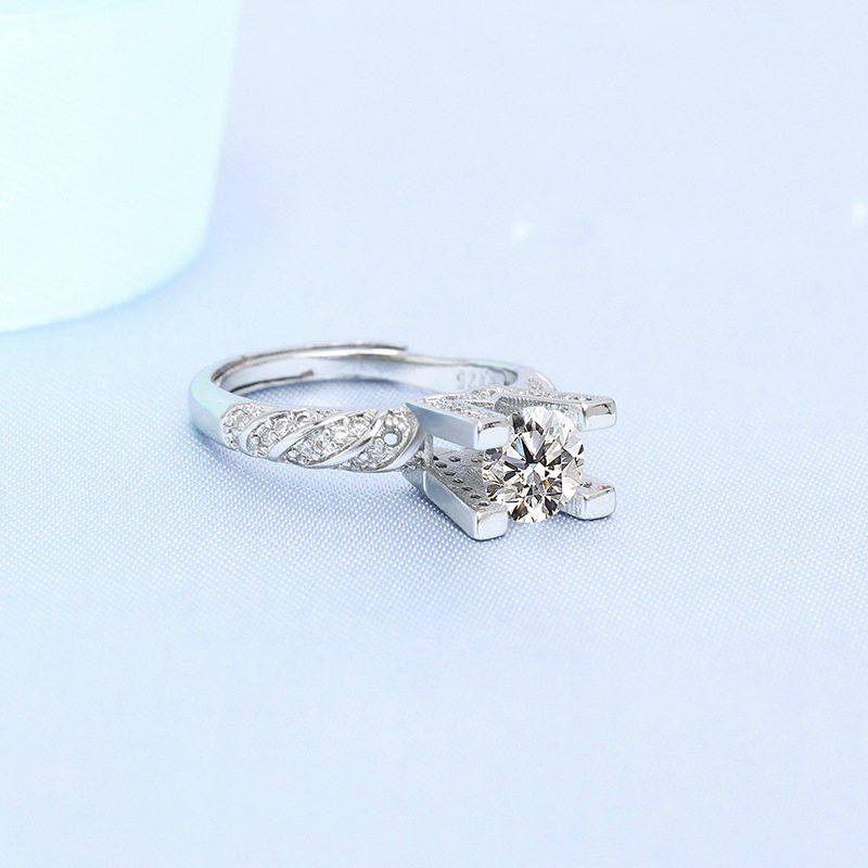 饰品欧美时尚硞石镶钻925镀银戒指少女简约甜美求婚订婚结婚钻戒