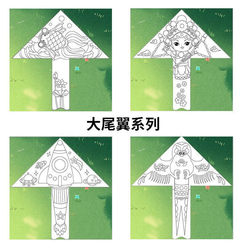 幼儿园画画风筝 diy空白风筝儿童手工自制材料包卡通填色涂鸦绘画