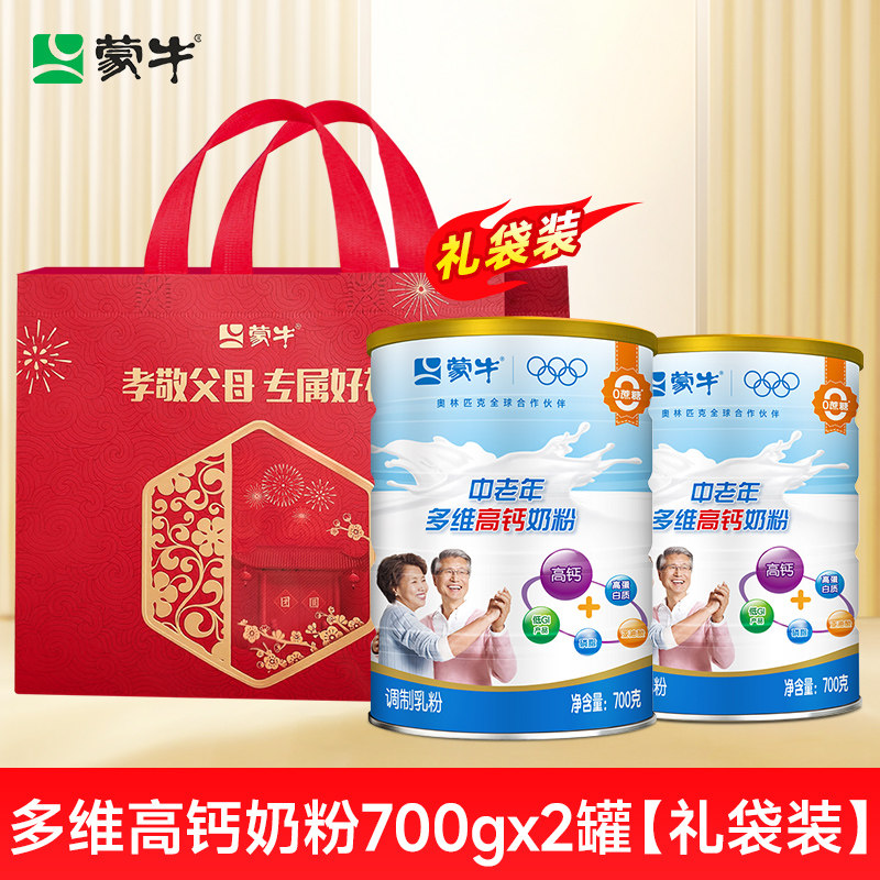 蒙牛中老年奶粉700g*2罐多维高钙营养老年人牛奶粉送礼盒正品官方