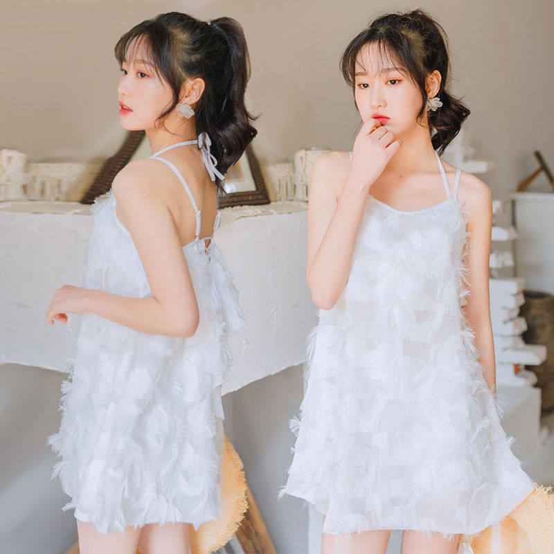 夏季新款分体比基尼三件套羽毛显瘦遮肚仙女范韩国ins泳衣女9213