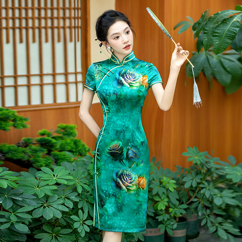 2025春季新款真丝旗袍中式桑蚕丝连衣裙手工缝制送考宴席日常可穿