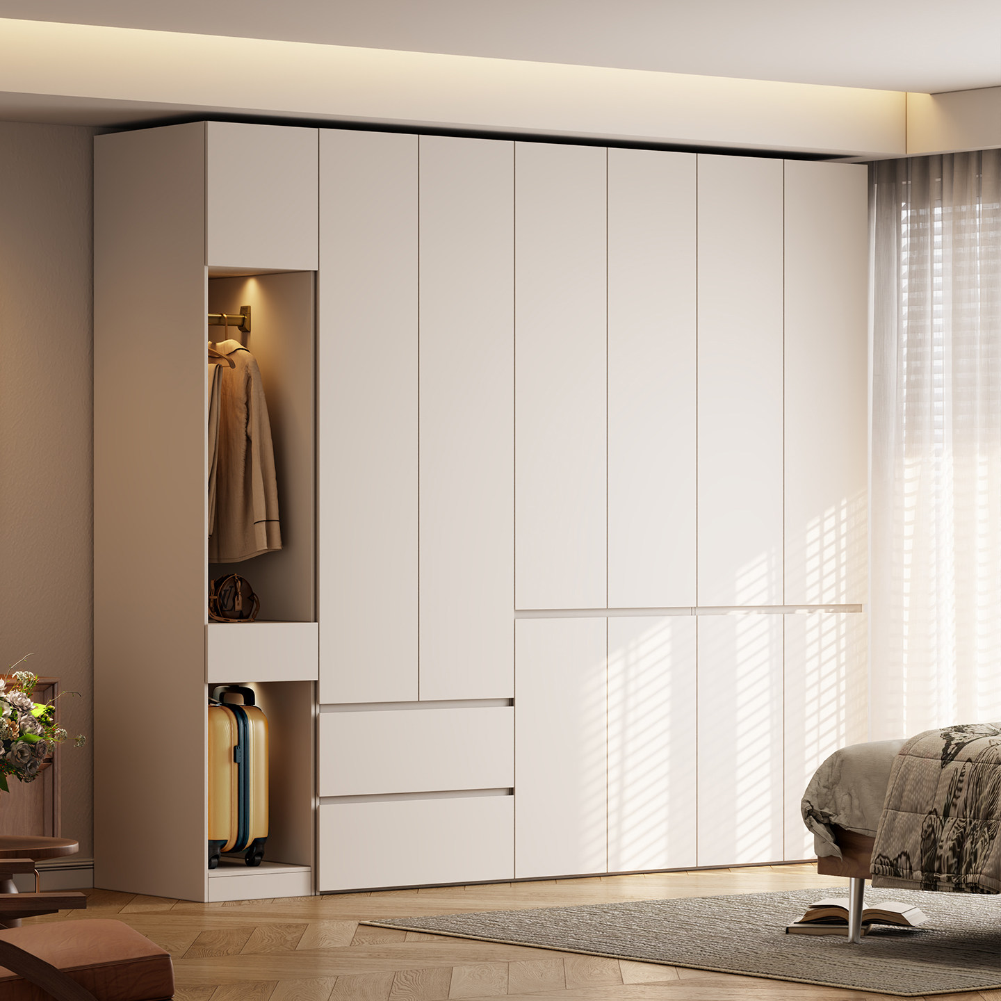 兔宝宝实木多层板衣柜家用卧室现代简约分段式大衣用收纳实木衣橱