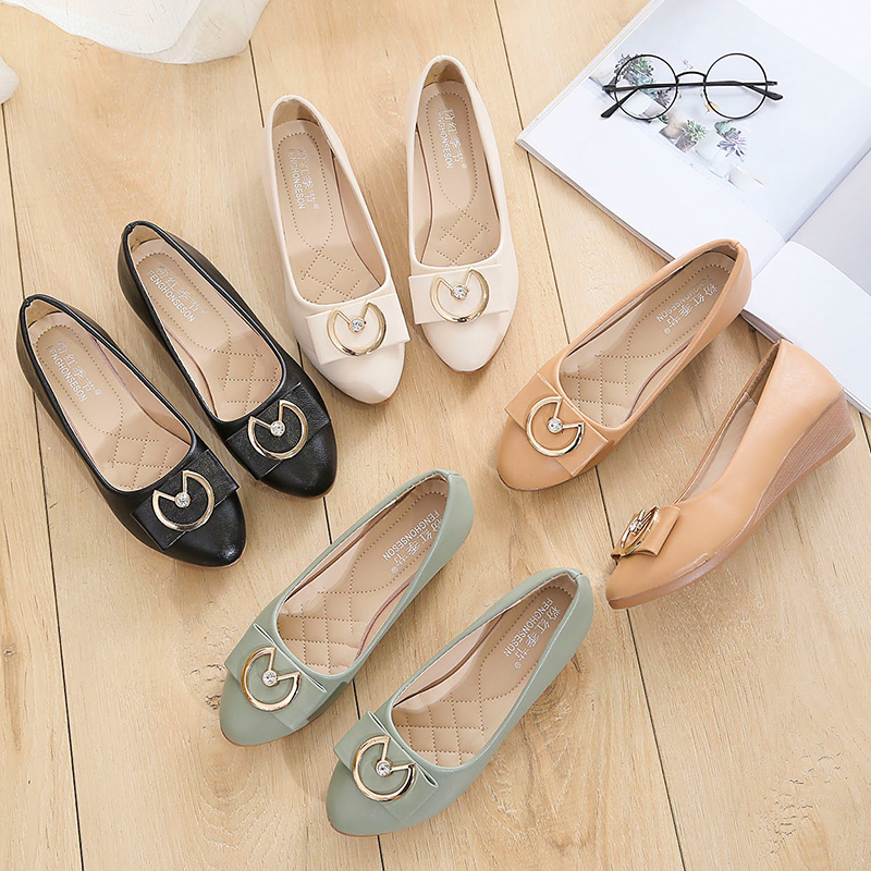 豆豆鞋女夏浅口坡跟平底单鞋蝴蝶结内增高女士2025新款百搭妈妈鞋
