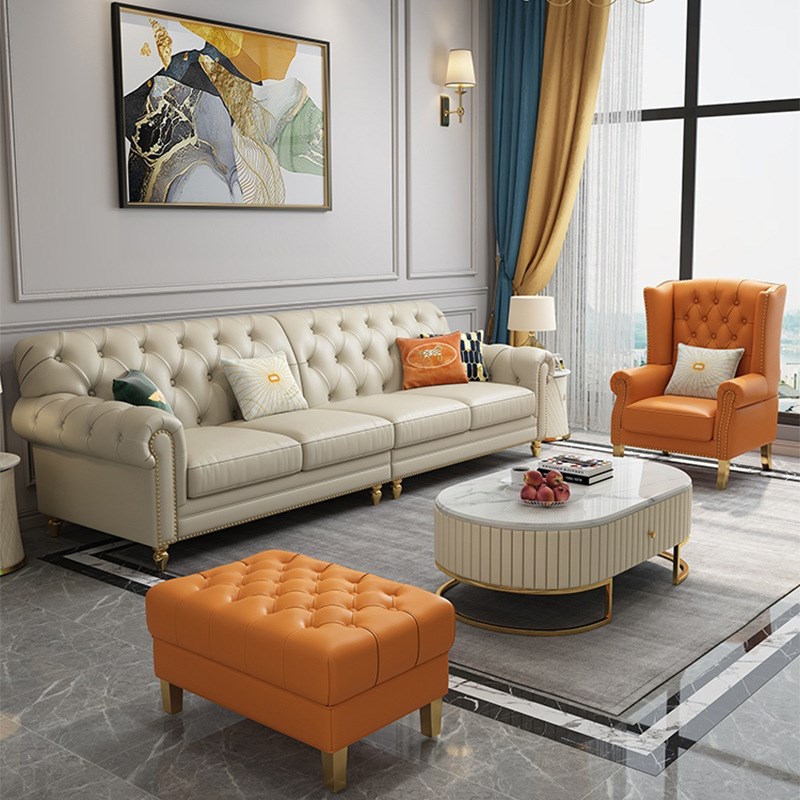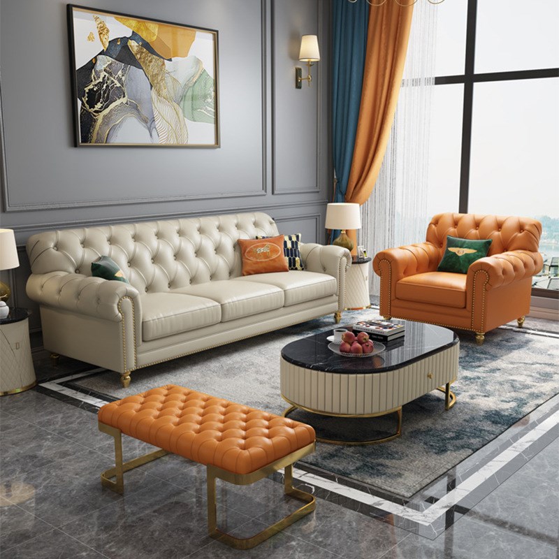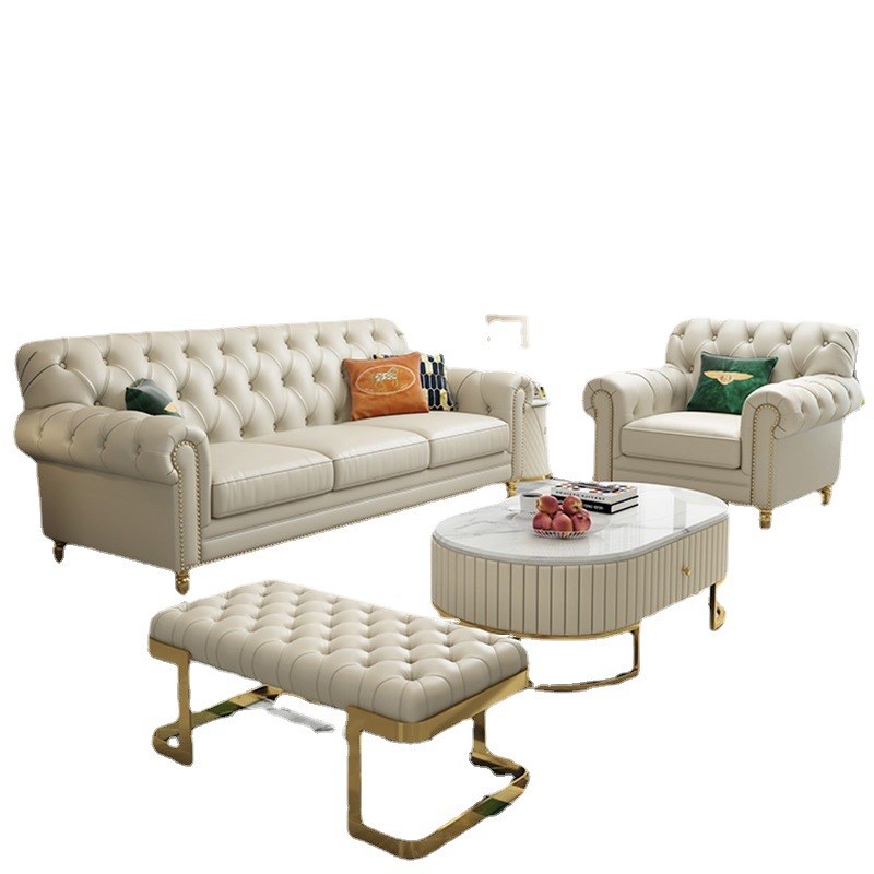 美式轻奢皮艺沙发大小户型客厅现代简约拉扣三人位组合样板房家具