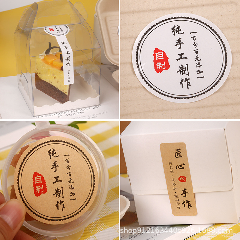 纯手工制作贴纸标签不干胶牛皮纸长条圆形小封口贴腰封瓶子罐子
